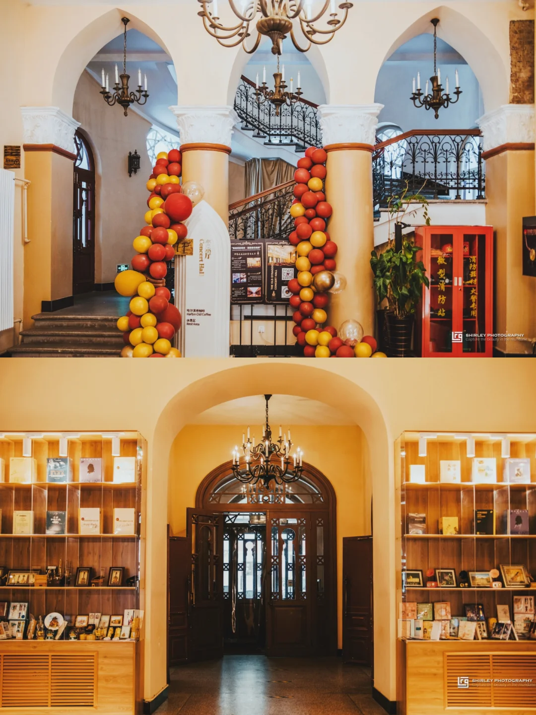 💠内部还有一家小小的咖啡馆,顾客可以自由选择坐在一楼或二楼,我们觉得坐在二楼俯瞰整个音乐厅位置绝了。一边坐在国保单位里喝着咖啡,一边看着窗外的飘雪,可以说是来哈尔滨最值得记录的moment了。