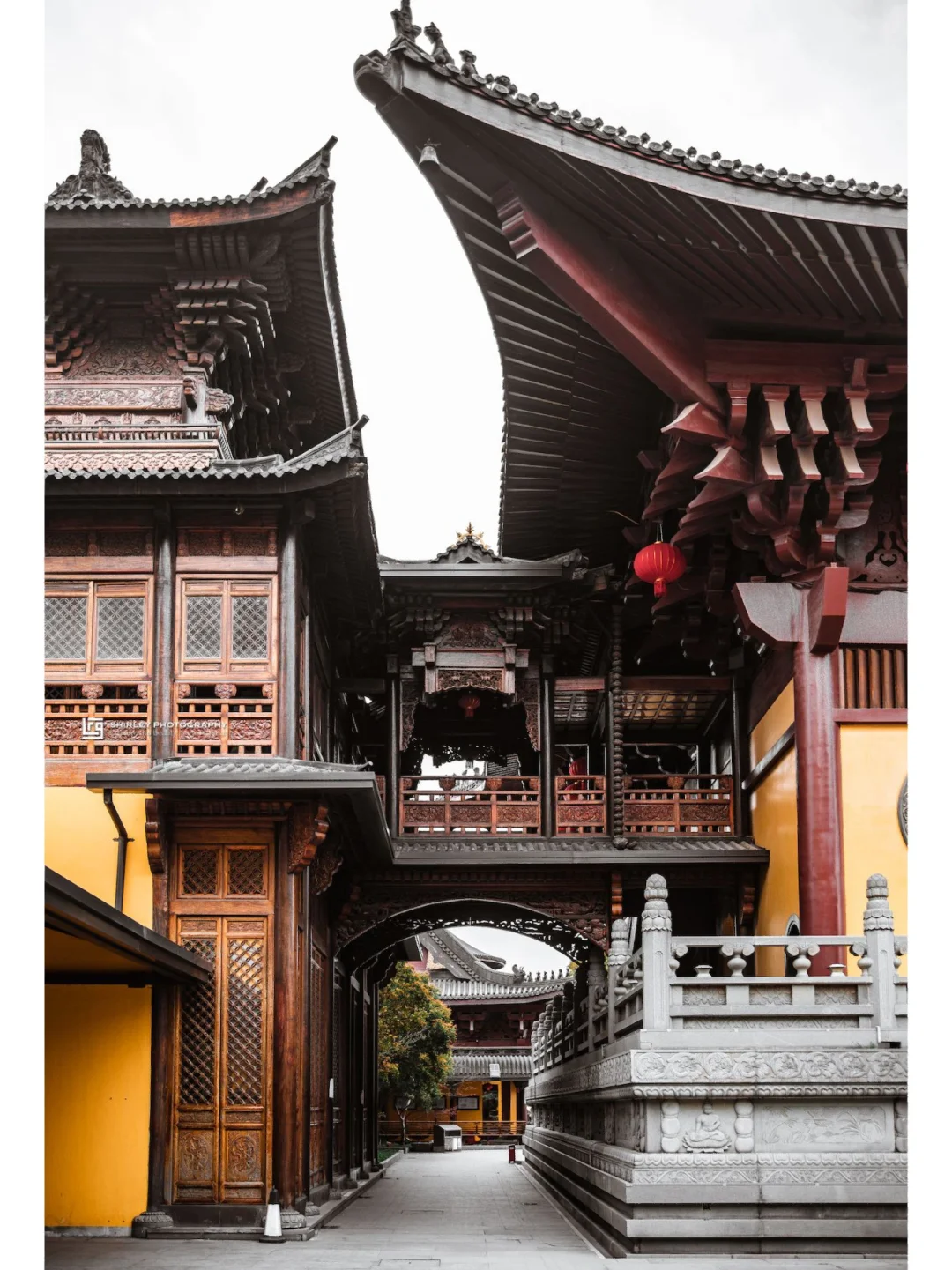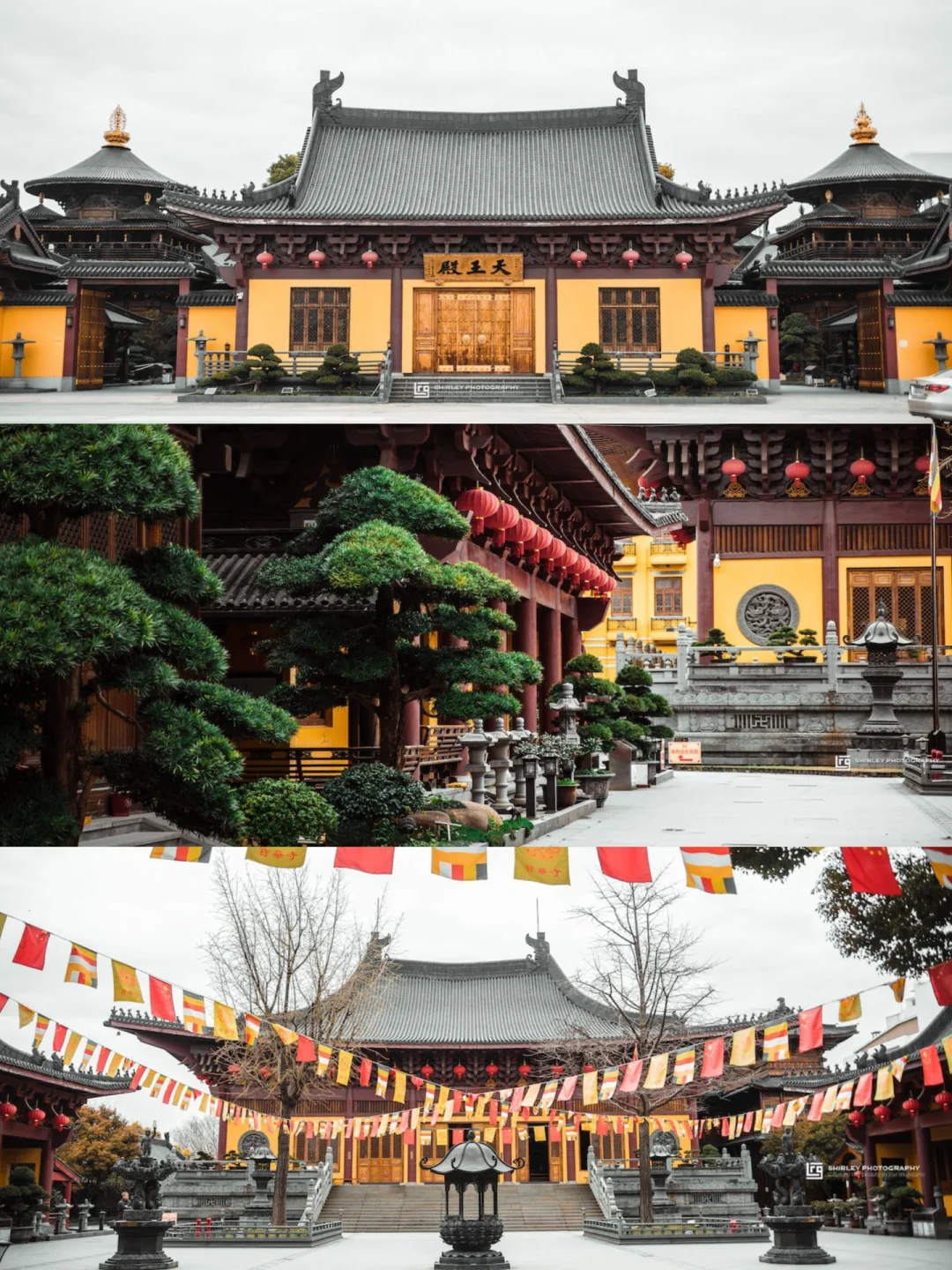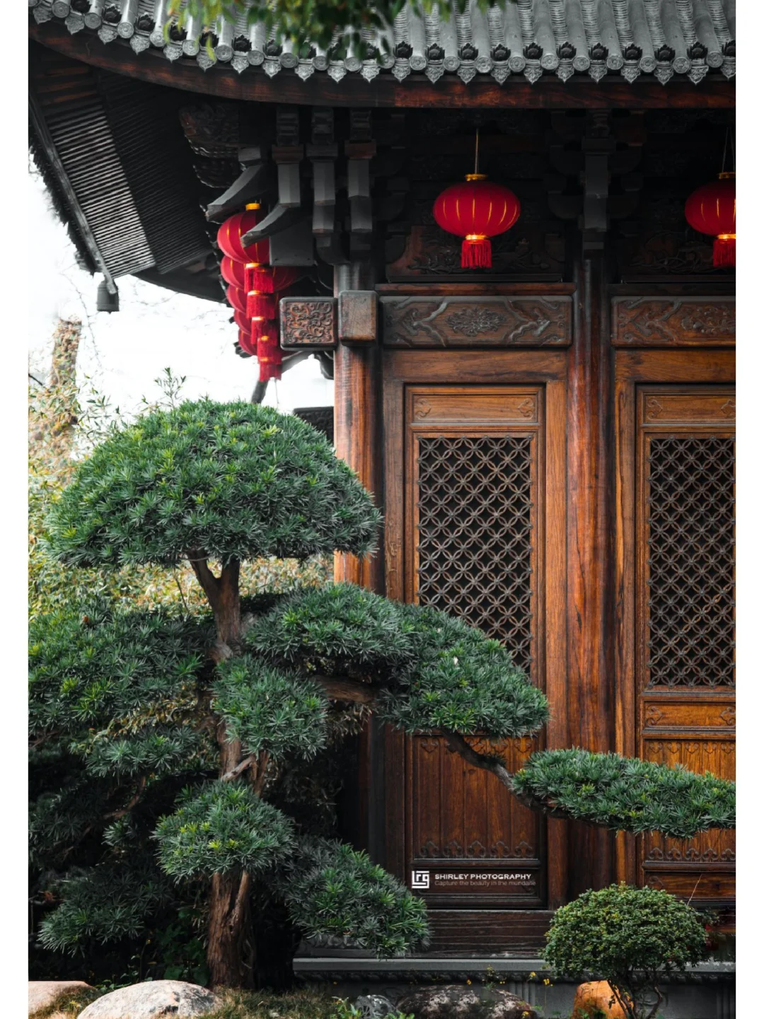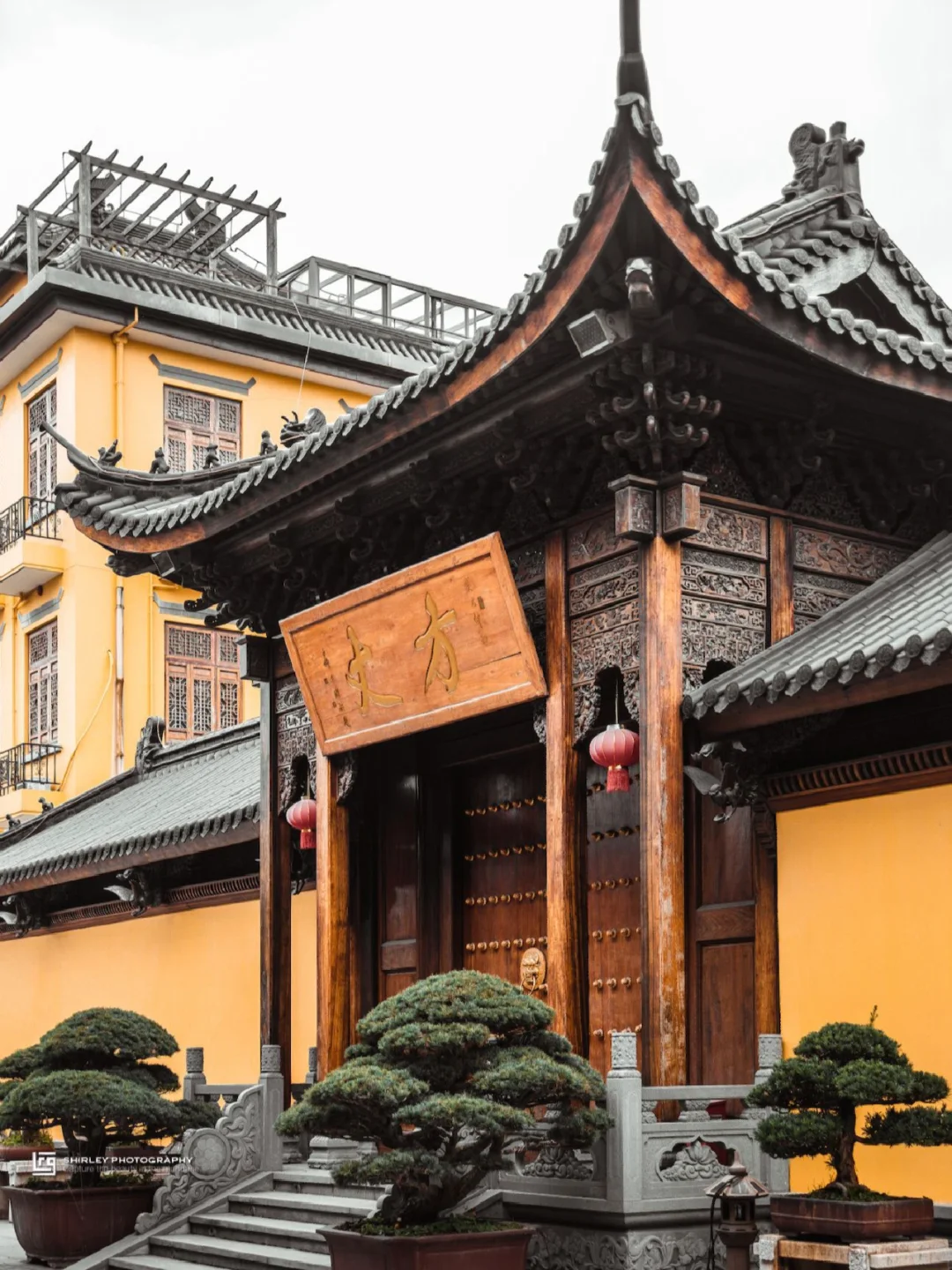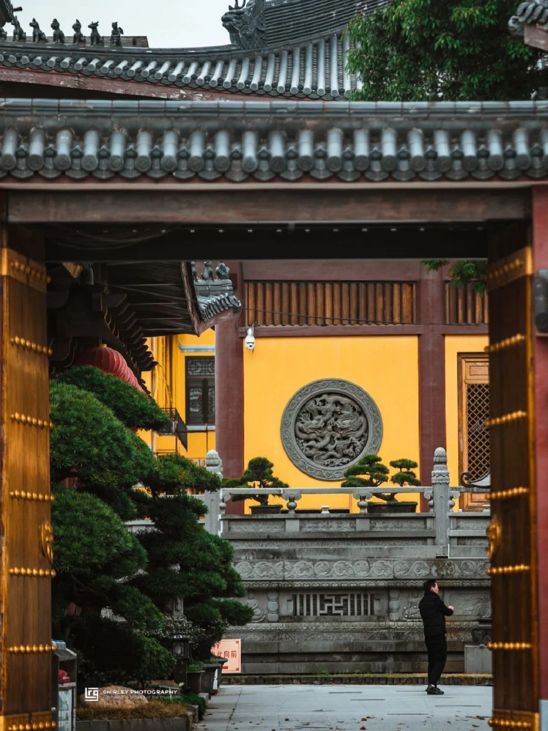 寺内一草一木均精心修剪,还有矮胖圆润的罗汉松,与仿古建筑相得益彰,每个角落都不乏细节。