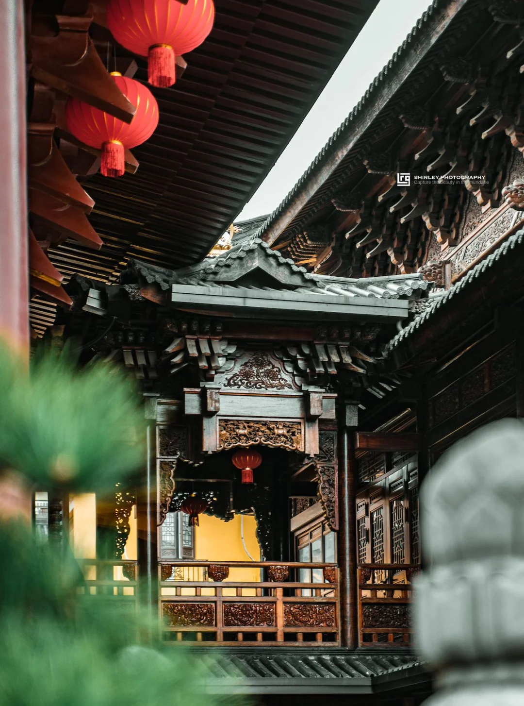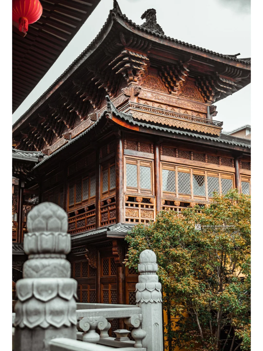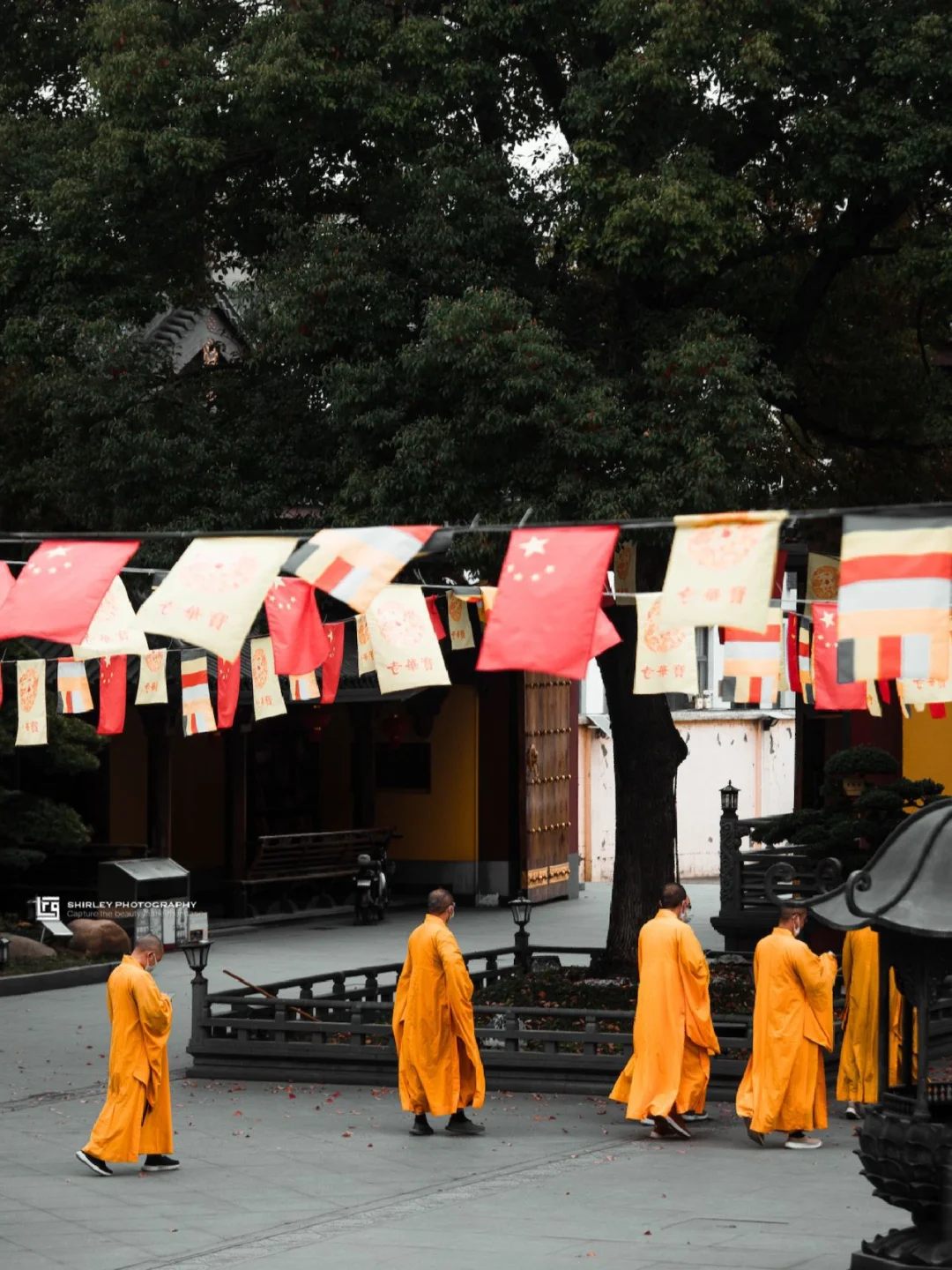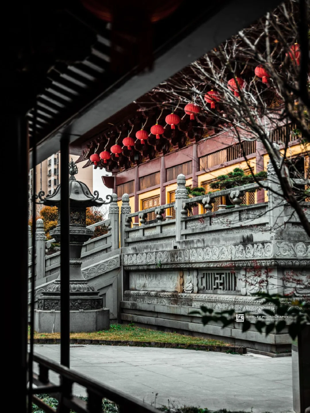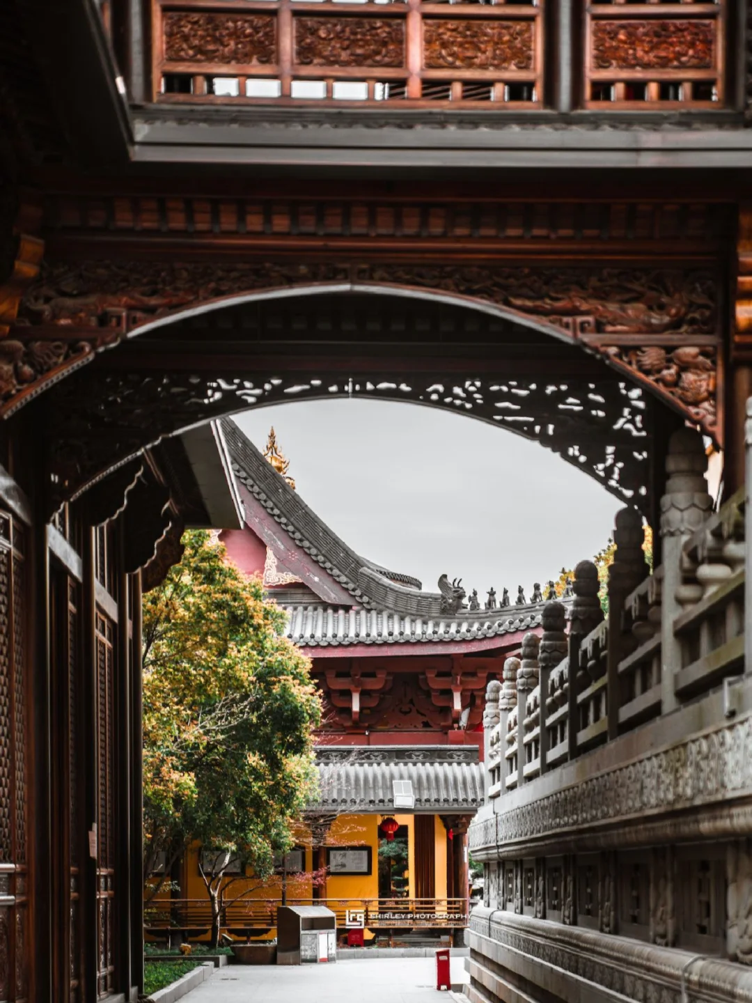 寺内一草一木均精心修剪,还有矮胖圆润的罗汉松,与仿古建筑相得益彰,每个角落都不乏细节。