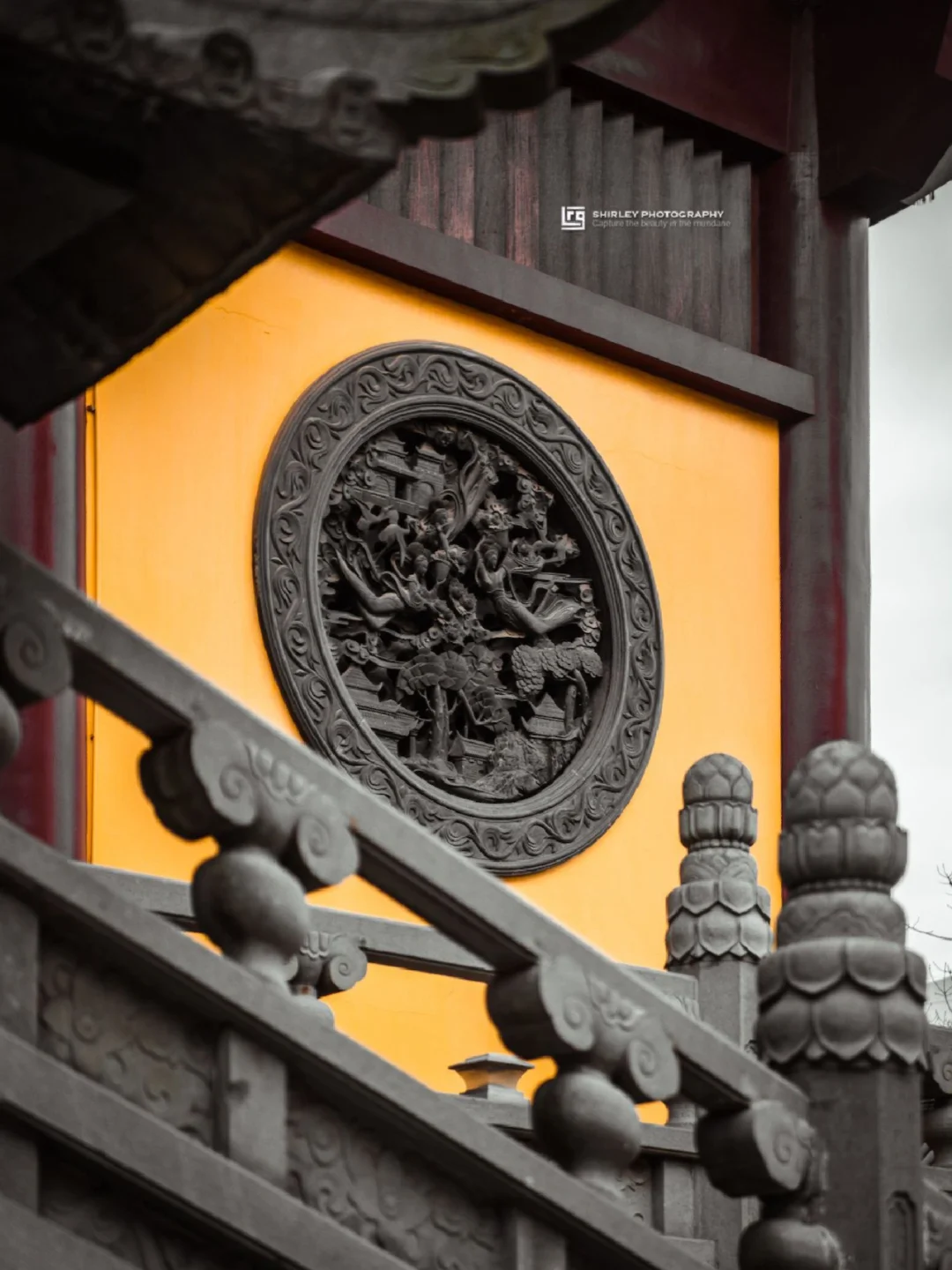 特别是左右两侧的钟楼和鼓楼,仿照北京天坛修建的圆形攒尖顶在上海很稀罕,类似屋顶我只在西林禅寺见过。远观层次错落,精细繁复。