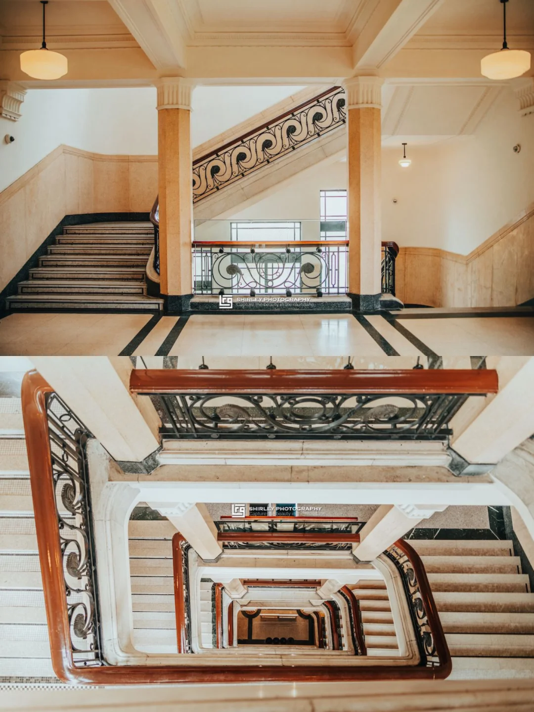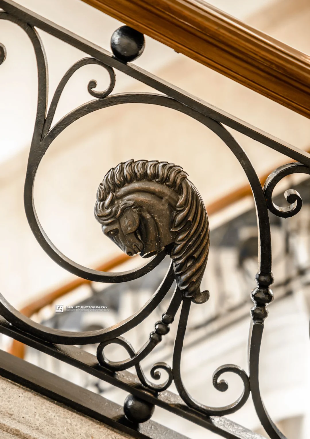 ▫️楼梯的铸铁栏杆上,依然留有马头元素,呼应了这栋建筑zui初为跑马而生。