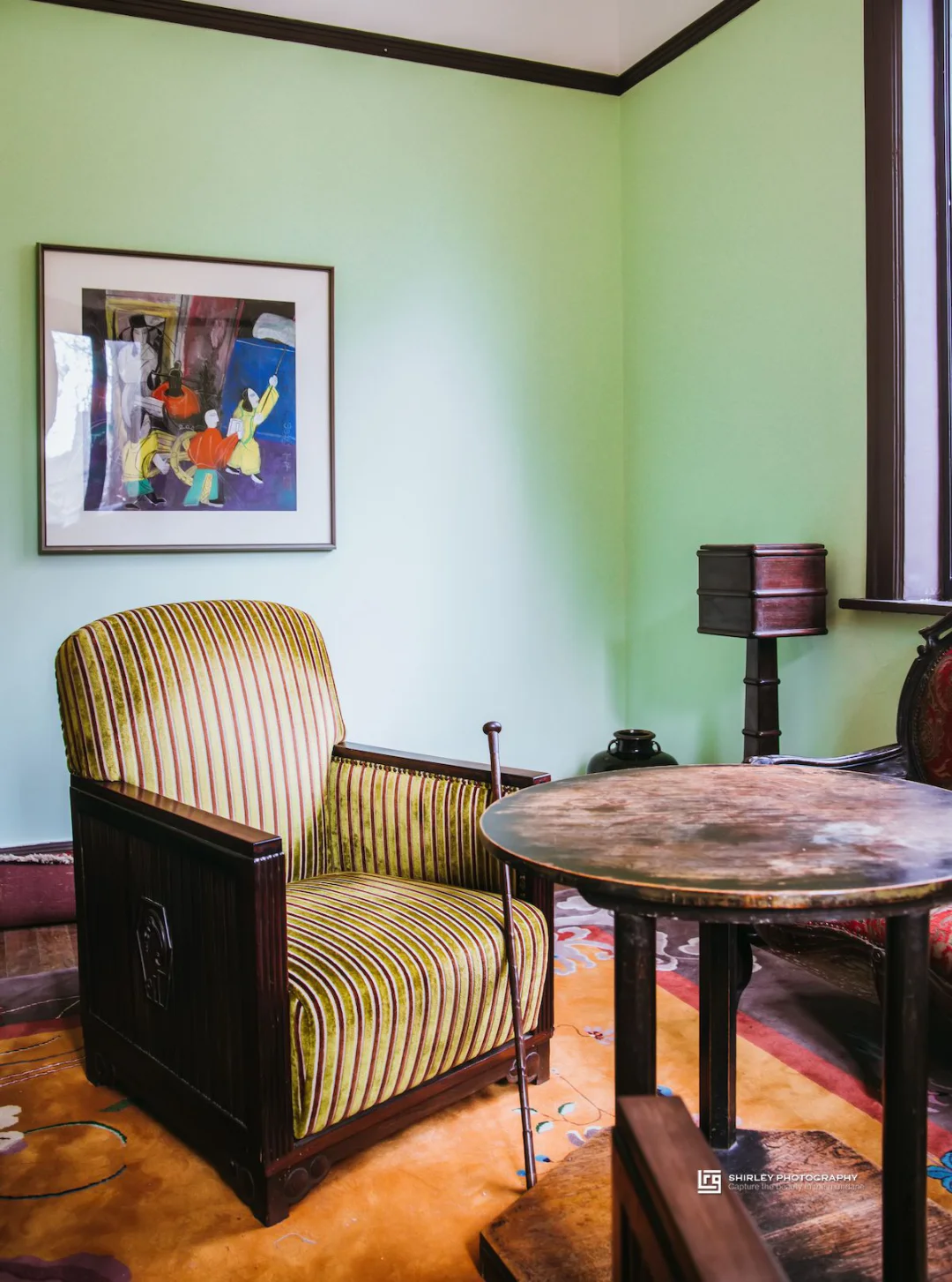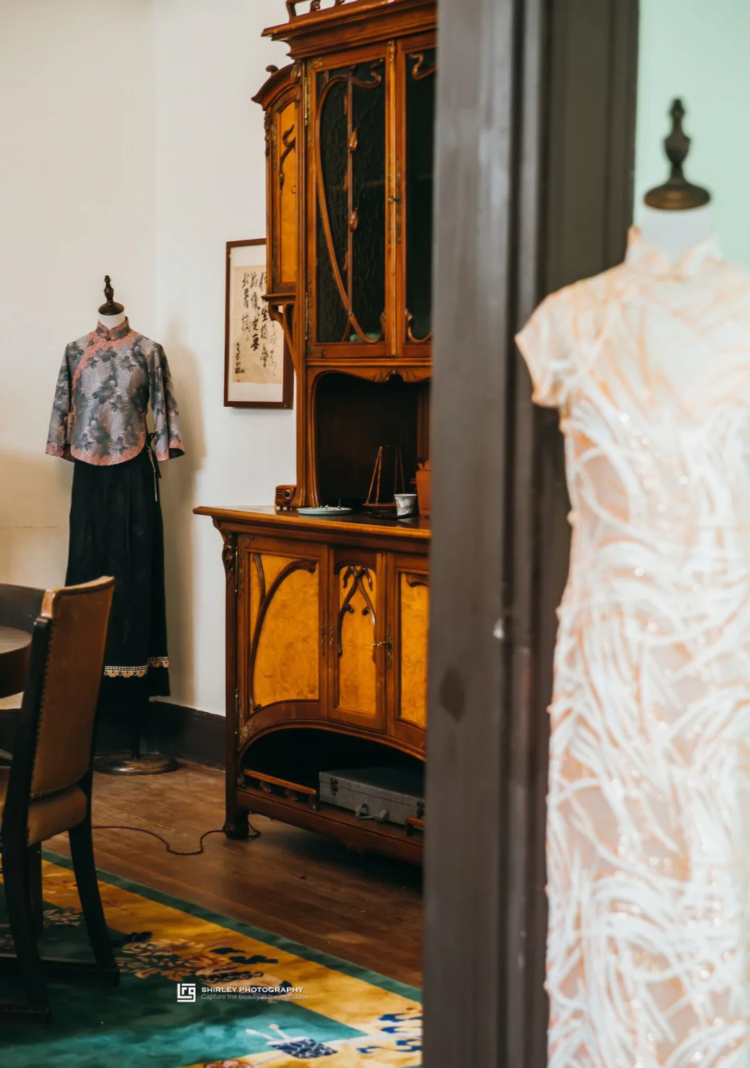 ▫️与其说是展厅,更像是老洋房里的原状陈列。没有太过刻意的展示手段,各种款式的古董旗袍,与原汁原味的海派art deco古董家具相互成就,托起一个让观众有信念感的年代空间。挂在墙上的装饰画,不经意抬头看见,也都是画廊主人收藏的名家真迹。