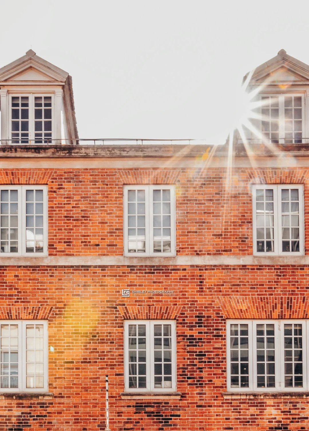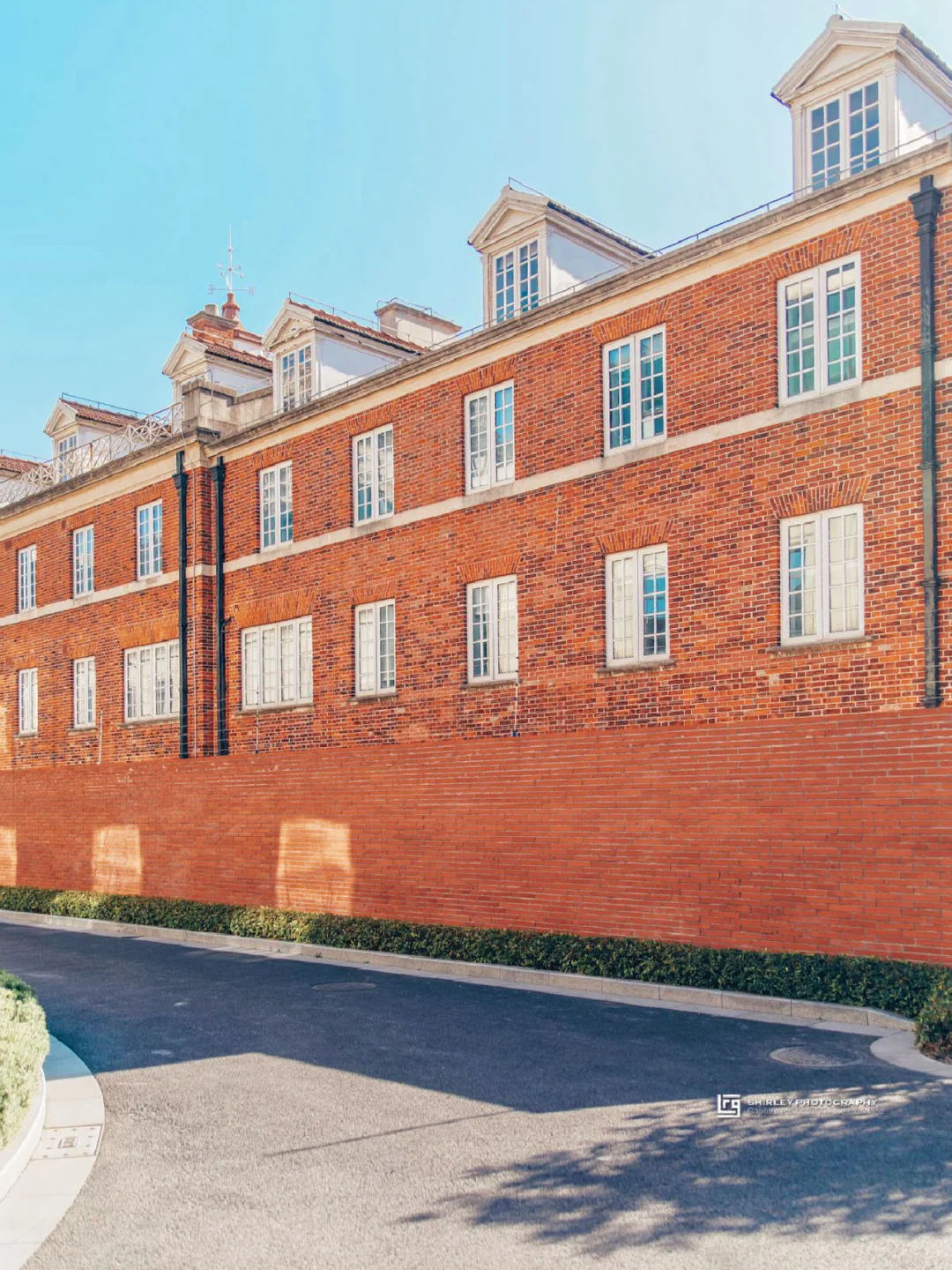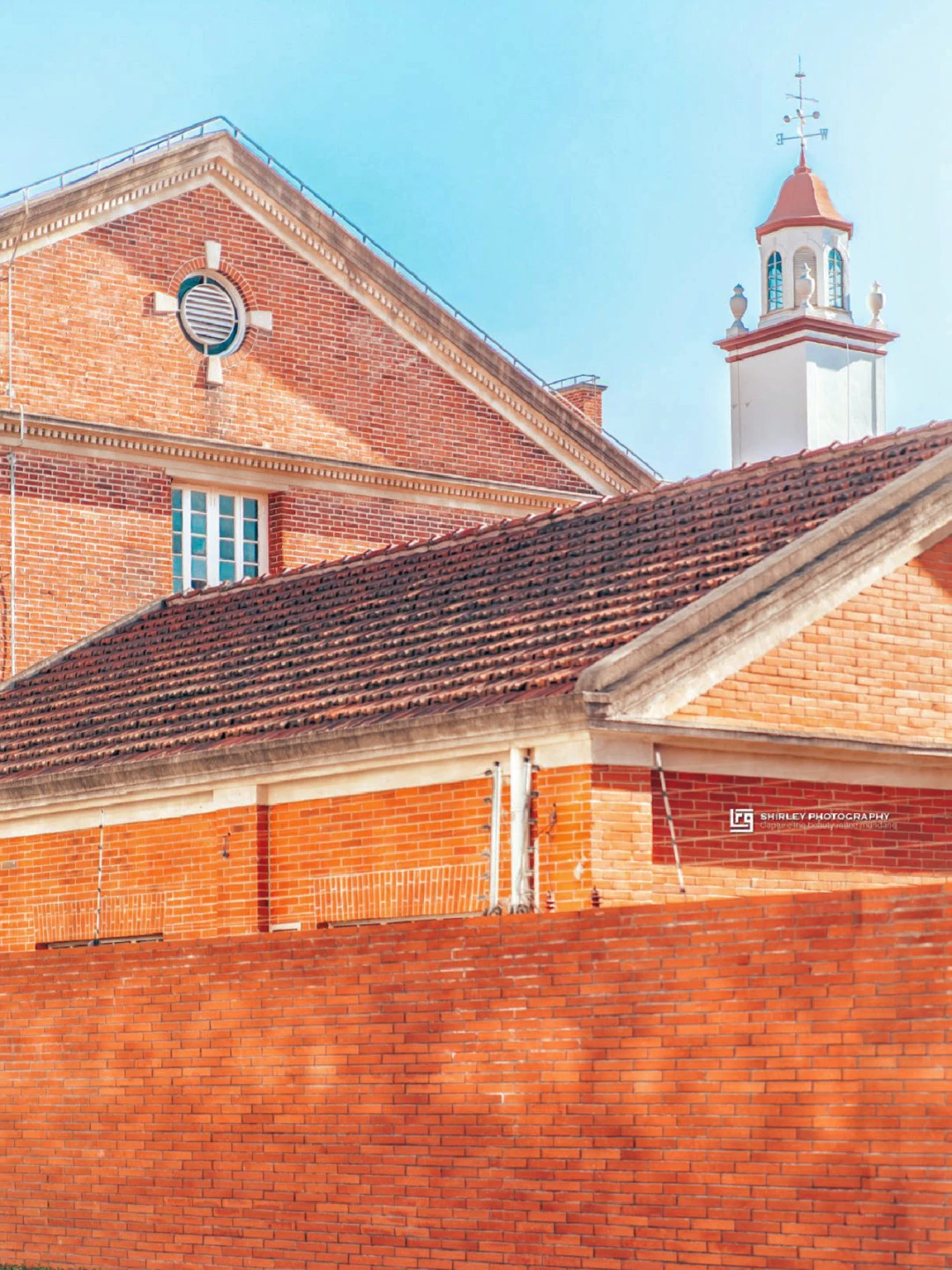 ▫️建筑墙面多为清水红砖,屋顶有连续排列老虎窗,欧式尖顶塔楼点缀着天际线,檐口及圈心石白色装饰,保留了美式文艺的风貌。
