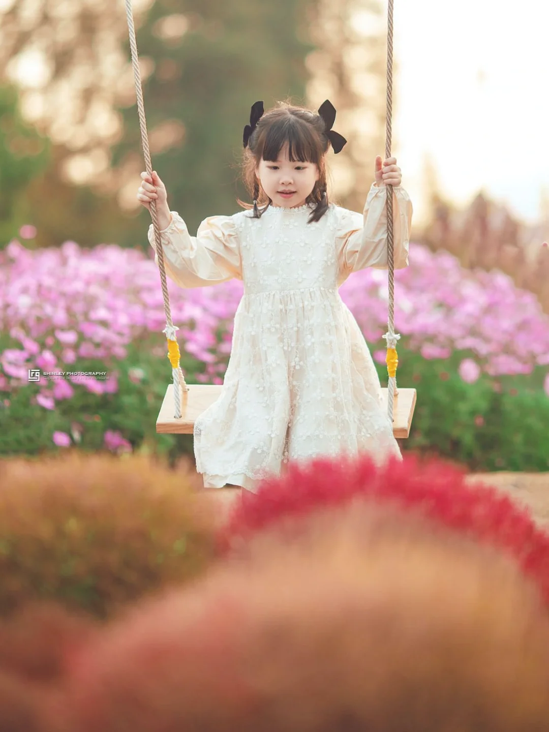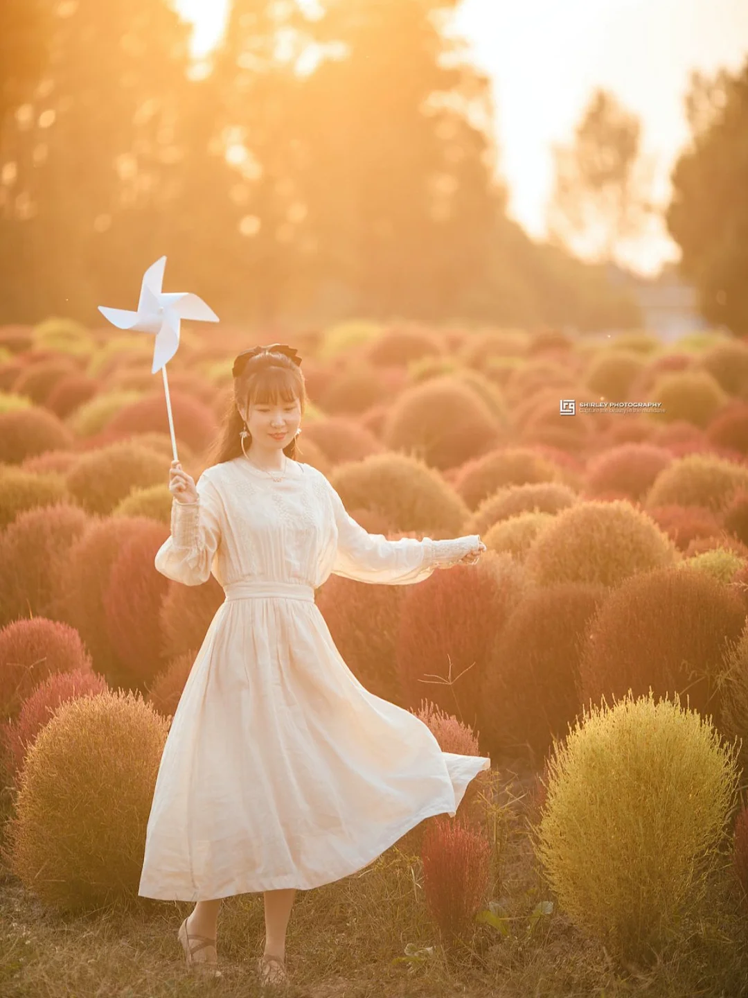 3️⃣寻找道具,花田里有白色风车、白色长椅、秋千等道具都很出片,就是下午高峰时人挺多,需要耐心寻找或等待