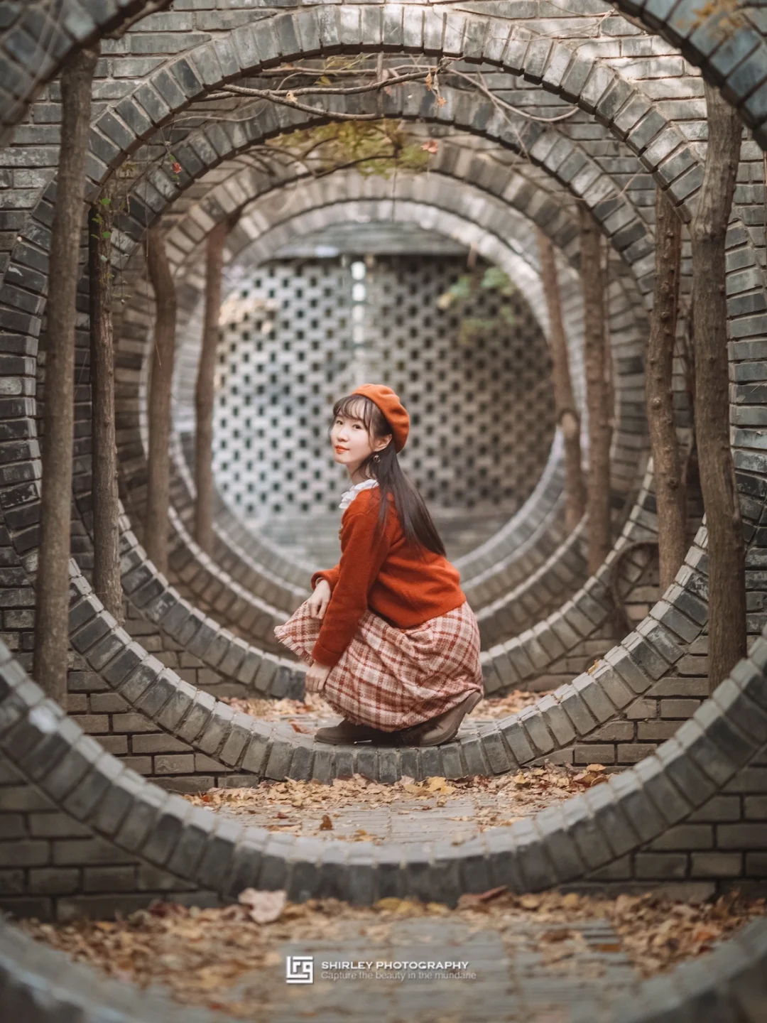 秋天时,这里的黄叶与红墙格外般配。梧桐叶堆满了红砖台阶,踩上去沙沙作响;从某处红砖墙的缝隙望出去,又是正被一束阳光“眷顾”的一棵银杏;或者与月洞门相得益彰的枫杨树。