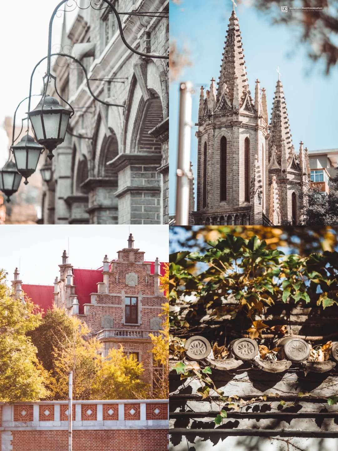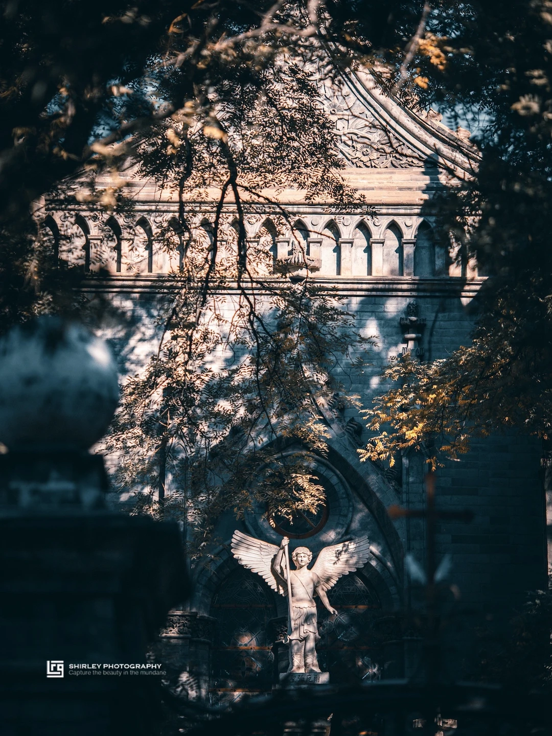落成于1904年,相比西什库整体拆除重建,是北京经历破坏最少最原装的一座天主堂。教堂为典型的哥特式风格,立面三个尖顶钟楼,用尖券、壁柱、彩玻璃窗和壁龛装饰。站在教堂对面用长焦捕捉到了沐浴在秋日阳光下的天使,很喜欢!