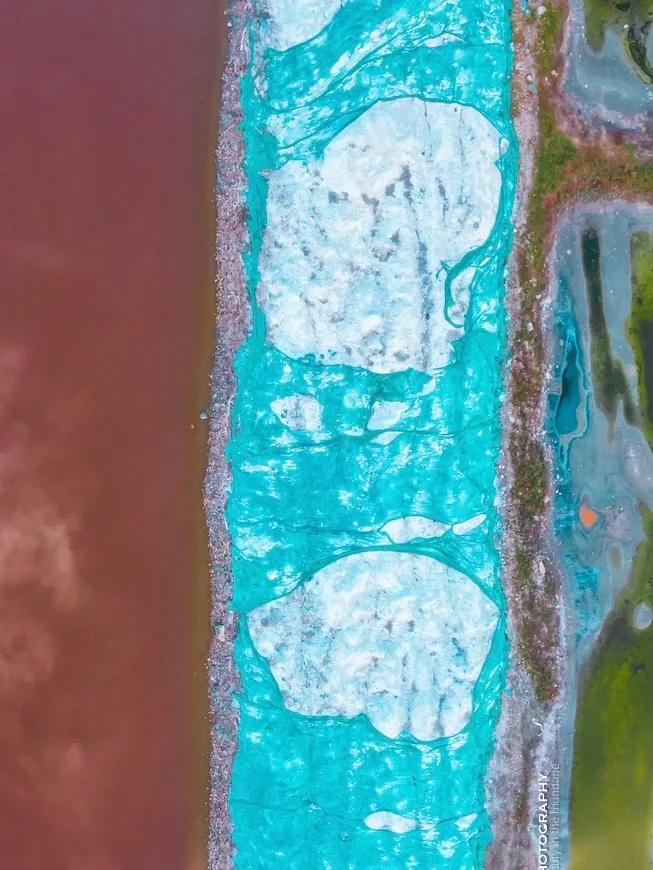 似乎和所有的盐湖都一样,航拍才是最佳享用方式。我们因为到得比较晚,景区内的游客交通都停止了,我们就在门口停车场飞了一下,距离有限就拍到了这些。如果能带上无人机深入湖区的话,还能再精彩些。