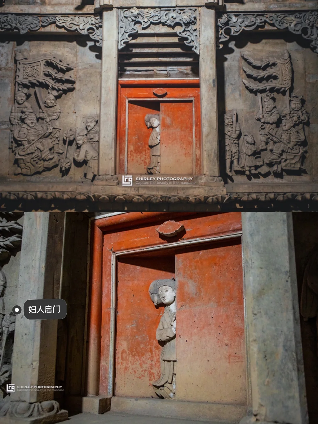 ▪️妇人启门是中国墓葬艺术中的一个常见意象,从东汉至唐,到了宋辽金时期更为流行,不少古墓中皆有发现。之前在洛阳古墓博物馆里见过,这次见到“原生”的了!