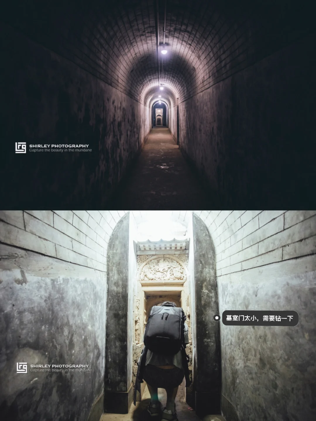 ▪️地下墓葬以甬道为主轴,目前开放的5座墓室分布在甬道的两侧,其实没有自己想象的大。墓室的入口非常狭窄,这才明白为什么售票处的工作人员会提示尽量不要背大包进去