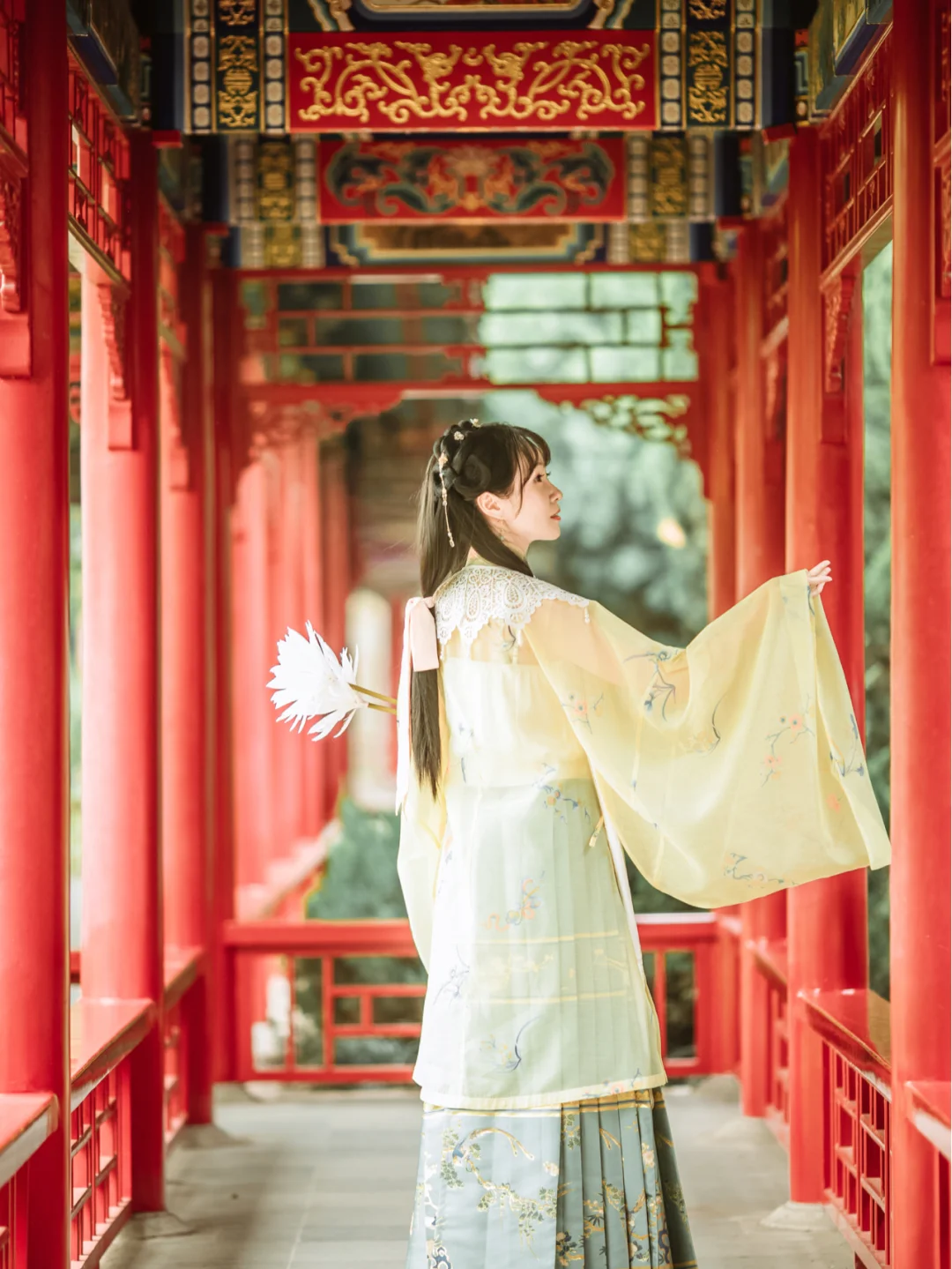 ♥️西园这里的建筑一反江南常见的白墙黛瓦,朱红色调雕梁画栋,明清风格的长廊,被人誉为“上海小故宫”。这里常年有古风摄影工作室出没,在这里穿汉服拍照会有种不似在上海的错觉。
