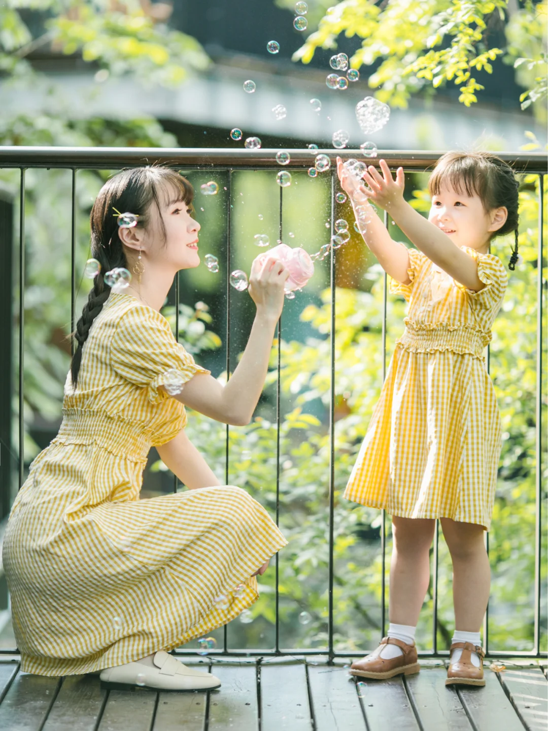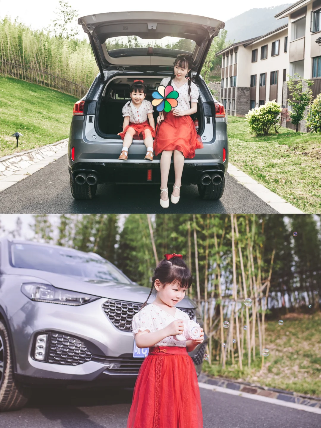 亲子合照不会摆POSE?让各种道具来化解你的尴尬。因为我们出行时间短,我就准备了泡泡机,七彩风车,草帽,小包包。利用道具和孩子互动起来,会让你的亲子照更生动。其他也可以考虑精美的绘本,藤编野餐篮,永生花,扇子,气球等,大家可以根据喜好和出行时间来选择。