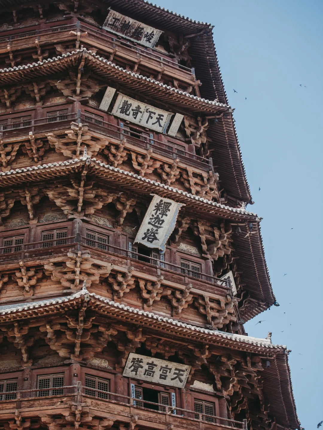 是塔,又不仅仅是塔,它更像一座时光的丰碑;无需过多知识储备,站在塔下依旧会被其强烈的气场感染。也许,一切美好的事物,都只属于时间;我们与盘旋在木塔四周的飞鸟,终究只是它的过客。