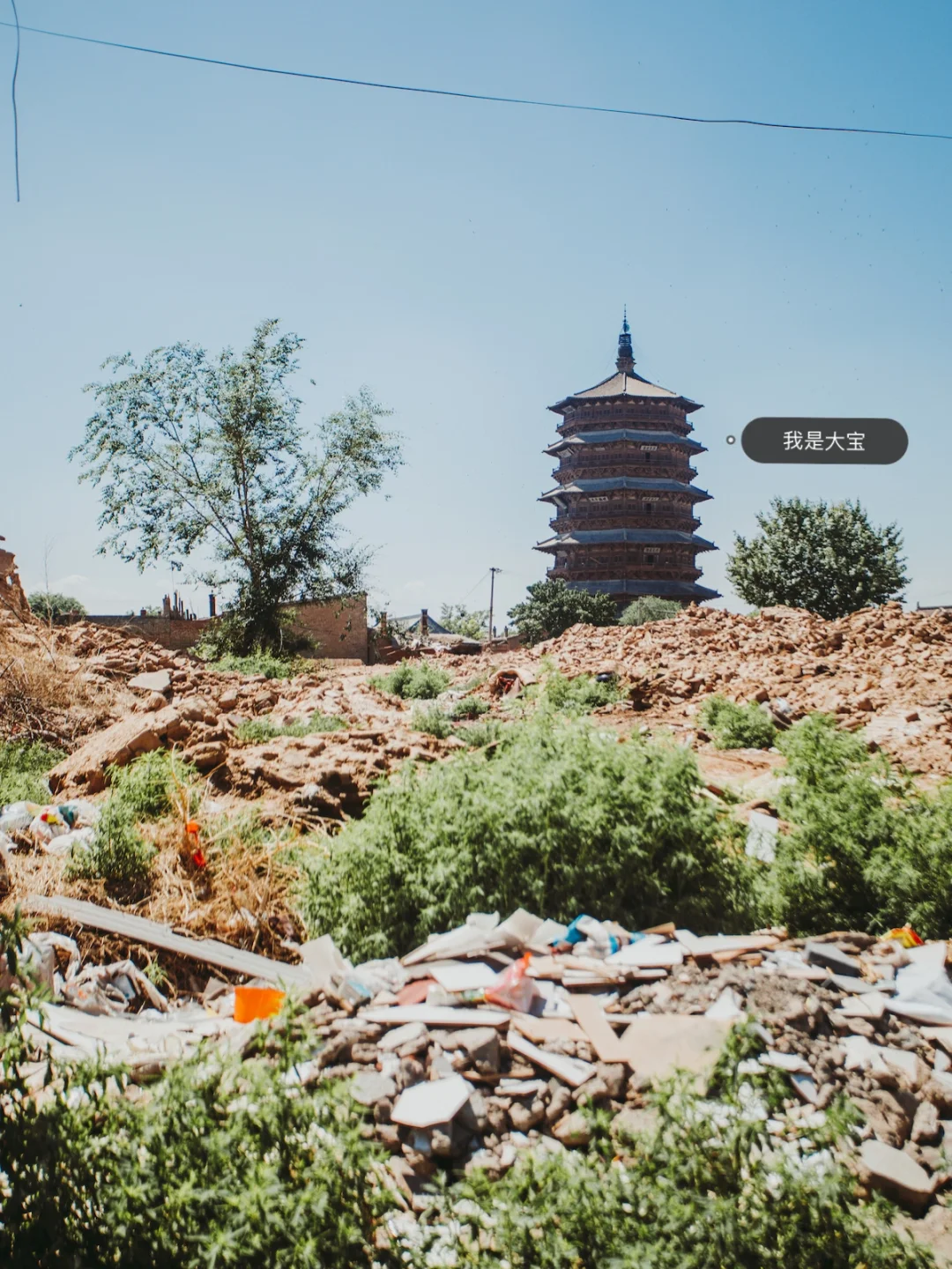 从木塔到净土寺步行1公里左右,要穿越一大片废墟,以废墟为前景拍木塔更有感觉。