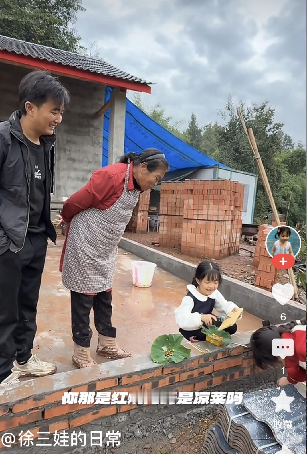 三嫂子拿着小树枝,要给徐开心完整的童年? 徐三娃在杀鸡,丈母娘在栽菜,三嫂子在拍视频,三嫂子正在感慨老妈太勤快,一刻也不得闲,抬眼一看,徐开心和小伙伴田里踩泥巴,三嫂子掰了个小树枝,要去给徐开心一个完整的童年! 徐开心飞快地绕圈跑回家,三娃子出来了,三嫂子大概忘了这事! 小开心又和小伙伴办酒过家家,芋叶当碗,野果当菜!丈母娘和徐三娃都饶有兴致地在旁边看,你别说,颜色还挺好看! 到底是红烧肉还是凉拌菜!反正看起来不错! 徐开心还把做好的菜给三娃子吃,三娃子开心地拒绝了! 田野里撒欢跑,小伙伴过家家,有猫狗追逐,有童年欢笑,确实,小开心有完整的童年!
