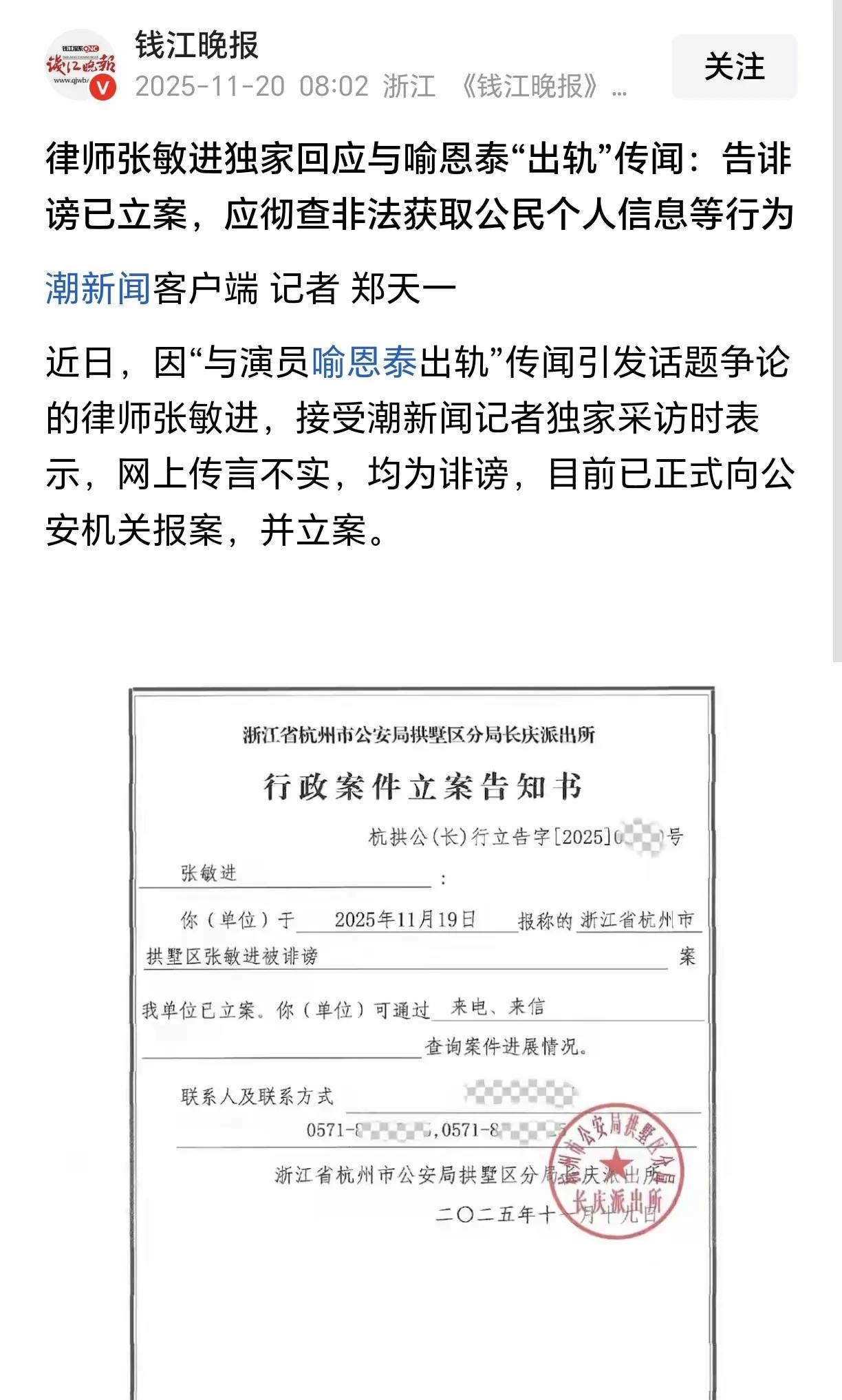 最新情况是:喻恩泰方已经报警立案,还要追究对方涉及的刑事、民事责任,要求彻查非法获取公民个人信息的行为。 经过董洁潘粤明事件后,现在内娱的离婚戏还是要先看看再说,等实锤调查结果出来才行。