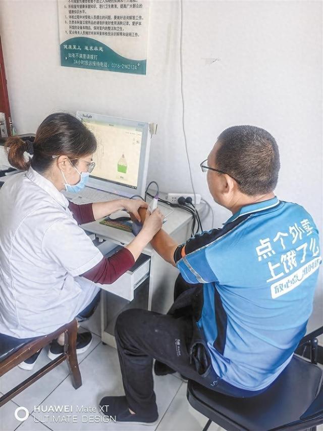 医护人员为新就业形态劳动者体检。记者张甜歌摄