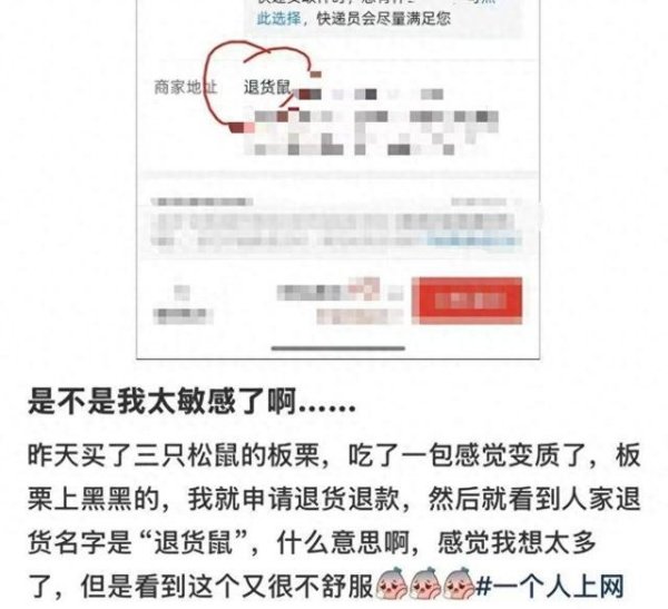 事件起因是有消费者发帖反映,自己网购三只松鼠板栗疑似变质并申请退货时,发现默认收件人名为“退货鼠”,疑似谐音“退货死”,似乎存在阴阳消费者的嫌疑,感觉自己被冒犯了。此事顿时引起网友热议,熟知内情的网友解释道,进了三只松鼠公司都要取一个“鼠名”,称呼顾客为“主人”。