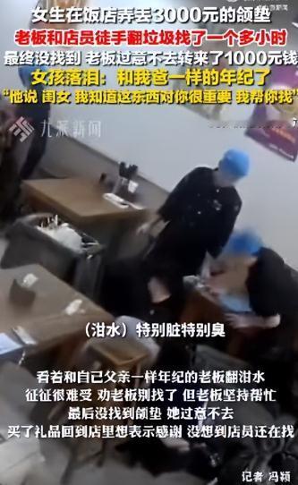 “活该他发财!”11月15日,河南郑州,一女生在饭店吃饭时,随手将价值3000元的颌垫放在桌上,结果不小心弄丢了,老板和员工得知后,徒手在垃圾桶里翻找,最终还是没能找到,老板觉得愧疚,就给女孩转了1000块钱!网友:这样的老板怎能不火!“活该他发财!”11月15日,河南郑州,一女生在饭店吃饭时,随手将价值3000元的颌垫放在桌上,结果不小心弄丢了,老板和员工得知后,徒手在垃圾桶里翻找,最终还是没能找到,老板觉得愧疚,就给女孩转了1000块钱!网友:这样的老板怎能不火 当时征征站在胡辣汤店后院,看着三个身影蹲在地上,双手在成堆的垃圾里扒拉,剩菜的汤汁浸着塑料袋,气味呛得人忍不住捂鼻子,可那几个人没一个停下的。 带头的是店老板杨老板,年纪跟征征父亲差不多,指尖沾满了污渍,还在一遍遍扒拉着垃圾,旁边的店员也跟着忙活,没人喊脏喊累。 他们要找的,是征征丢的一副颌垫。 这副颌垫是透明塑料做的,体积小巧,混在午市倾倒的七八桶垃圾里,找回来的概率几乎为零,可杨老板说“再找找,万一呢”。 从中午一点到下午两点半,整整一个半小时,几个人的动作没停过,最终还是没能找到,大概率是早就随着之前的垃圾被清运走了。 征征站在旁边,心里又愧疚又难受,一遍遍劝大家别找了,可杨老板只是摆摆手,继续埋头翻找。 谁能想到,这场耗时耗力的垃圾搜寻,源头只是一顿普通的周末午餐。 征征刚从郑州大学毕业,在附近的广告公司上班,经济上还没站稳脚跟,两年多来,这家胡辣汤店是她最常去的食堂,每周都要报道好几次。 11月15号是周末,午市的店里挤得满满当当,征征像往常一样,取下矫正牙齿用的颌垫放在桌角,热乎的胡辣汤喝得舒心,饭后忙着赶去处理工作,转身就把桌角的小东西忘得一干二净。 等她反应过来颌垫丢了,已经离店很远了。 这副颌垫不是便宜货,是三个月前花3000块定制的,不仅是矫正牙齿的关键,丢了还得重新取牙模,至少耽误两周的矫正进度,对刚工作的征征来说,是笔不小的开支。 她急得直掉眼泪,又不敢跟家里人说,只能一路小跑往回赶,心里抱着最后一丝希望。 回到店里时,之前坐的桌子早就被收拾干净了,颌垫连个影子都没有。 征征趴在地上摸遍了桌椅底下,翻遍了随身的包,没找到任何踪迹,店员见状也赶紧帮忙,把店里的柜台、角落都搜了个遍,还是一无所获。 正在外面办事的杨老板接到店员电话,听说老熟客丢了重要东西,没多耽搁,立马赶回了店里。 问清楚颌垫的样子和丢失时间后,杨老板很快判断:大概率是收餐时被当成垃圾清走了,而店里的垃圾桶已经清空过三次,所有垃圾都倒进了后院的大垃圾箱。 没有丝毫犹豫,杨老板找了几副手套分给店员,自己先撸起袖子蹲下身,就有了后院翻垃圾的那一幕。 搜寻无果后,征征心里又失落又过意不去,第二天特意买了两箱饮料和一些水果,专程到店里表达感谢。 可杨老板却推来推去,只收下了饮料,硬是把水果塞回她手里,说“你刚上班不容易,不用这么客气”。 征征以为这事就这么过去了,没想到当天晚上,手机突然弹出一条转账提示,是杨老板转来的1000块钱。 她连忙推辞,说这是自己的责任,不能要老板的钱,可杨老板态度很坚决,非要她收下,说东西在自己店里丢的,他心里过意不去,这钱能帮着减轻点重新定制的负担。 拗不过杨老板,征征最终收下了这笔钱,之后把整件事原原本本地分享到了网上。 没成想,这条分享很快就炸了屏,网友们的评论清一色的好评。 有人说,现在很多商家遇到顾客自身疏忽的事,能敷衍两句就不错了,杨老板不仅不推诿,还带着员工徒手翻垃圾,甚至自掏腰包补贴,这份同理心太难得了。 也有人说,这1000块钱花得太值了,看似老板亏了,实则赚了顾客的信任和全网的好口碑,这比任何广告都管用。 商家的做法都超出了法定义务,顾客自己疏忽丢东西,店家本没有必须帮忙寻找或赔偿的责任,选择了多走一步。 征征之后也吸取了教训,买了三个收纳盒,分别放在包里、办公室和家里,每次吃饭前都会把颌垫妥善收好,再也不敢大意。 网友们在点赞杨老板的同时,也不忘提醒大家,在公共场所不管是贵重物品,还是手机、钥匙这类小物件,都得妥善保管,避免因一时疏忽造成损失。 一场因疏忽引发的意外,最终以双向善意收尾。 杨老板没玩任何营销套路,只用一顿翻垃圾的辛苦和1000块钱的真诚,就赢得了全网的认可。 生意的本质从来都是人与人的打交道,口味和价格是基础,但真诚和人情味才是长久之道,这样有良心、懂共情的经营者,自然会被市场善待,也难怪网友们会一致喊着“活该他发财”。 那么到最后,你们怎么看呢? 如果各位看官老爷们已经选择阅读了此文,麻烦您点一下关注,既方便您进行讨论和分享,又能带来不一样的参与感,感谢各位看官老爷们的支持!