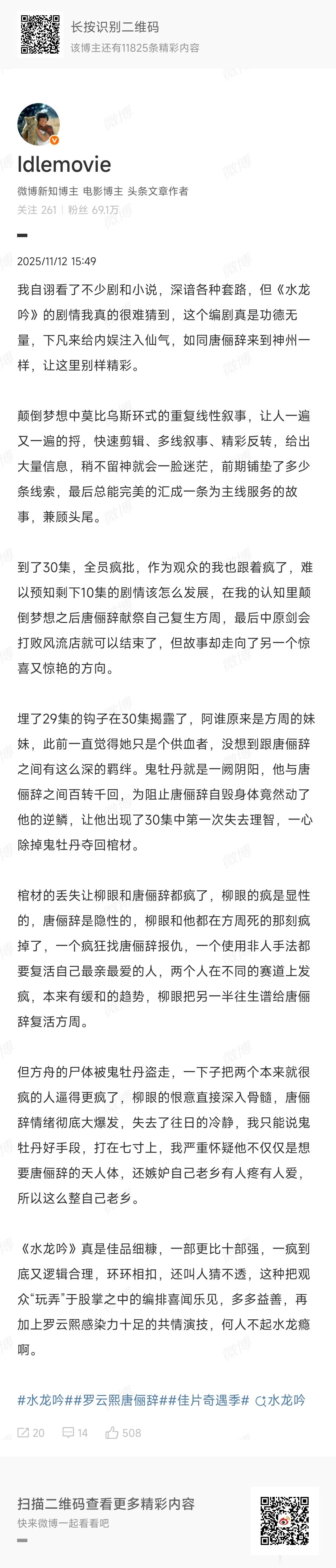 唐俪辞天下第一,18篇《水龙吟》长剧评见证用心追更,下一次,我们再一起追罗云熙的好剧。