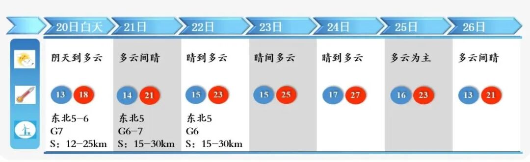 展望25到26日,多云,早晚寒凉。
