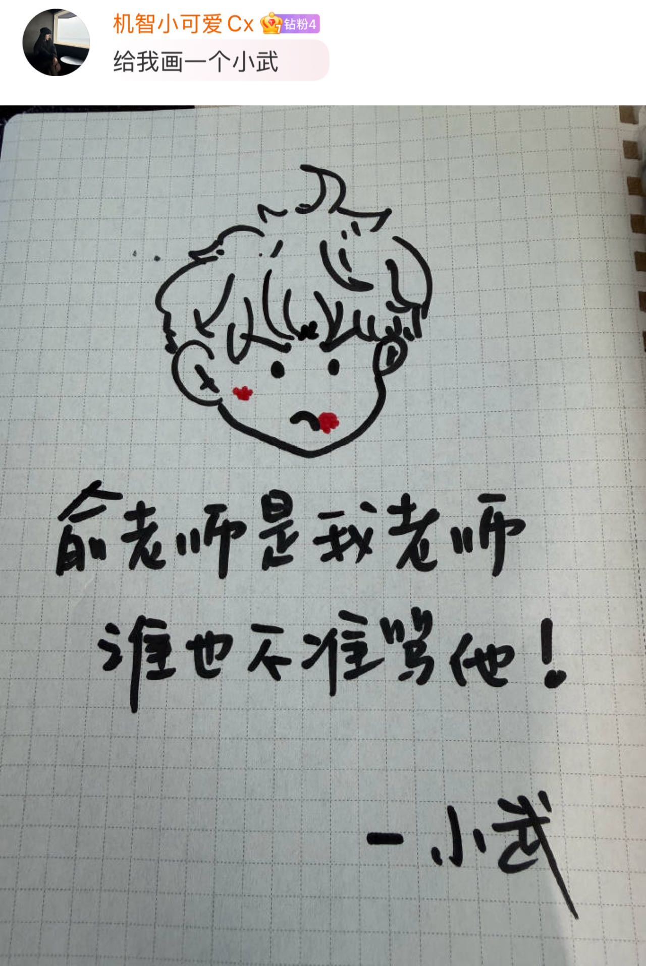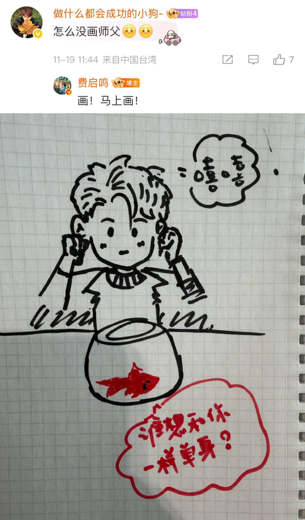 费启鸣:停停停都别急,画完你的画你的!发完给张瑶的手绘图,评论区开始许愿了,费费画完小武画俞老师,画完俞老师又cue单身梗,好有is的一个人!那抽我画张头像行不行!看评论还给林飒姐手写了一副“遇见张瑶”,我也要一张不过分吧!