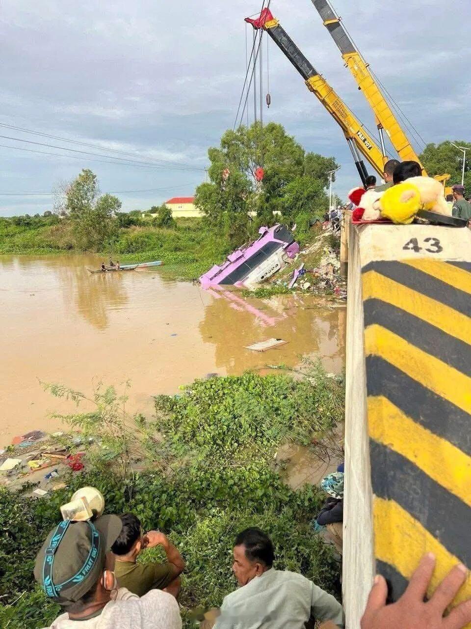 另有24人受伤11月20日凌晨4点左右,在柬埔寨,一辆从暹粒开往金边的双层夜班大巴在磅通省附近发生翻车事故,造成13人当场死亡,24人受伤。据了解,当时大巴开到一座大桥时撞到护栏,之后翻车掉进河里。