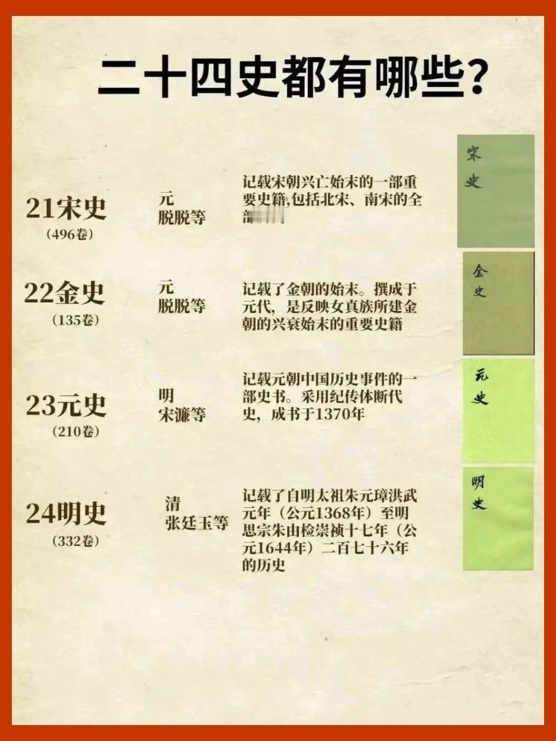 “经史子集”中的二十四史指的是哪些?二十四史是中国古代二十四部纪传体史书的总称,