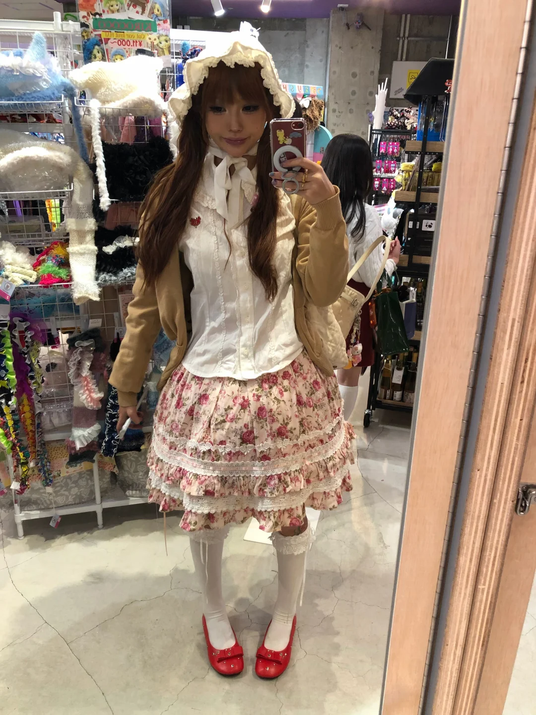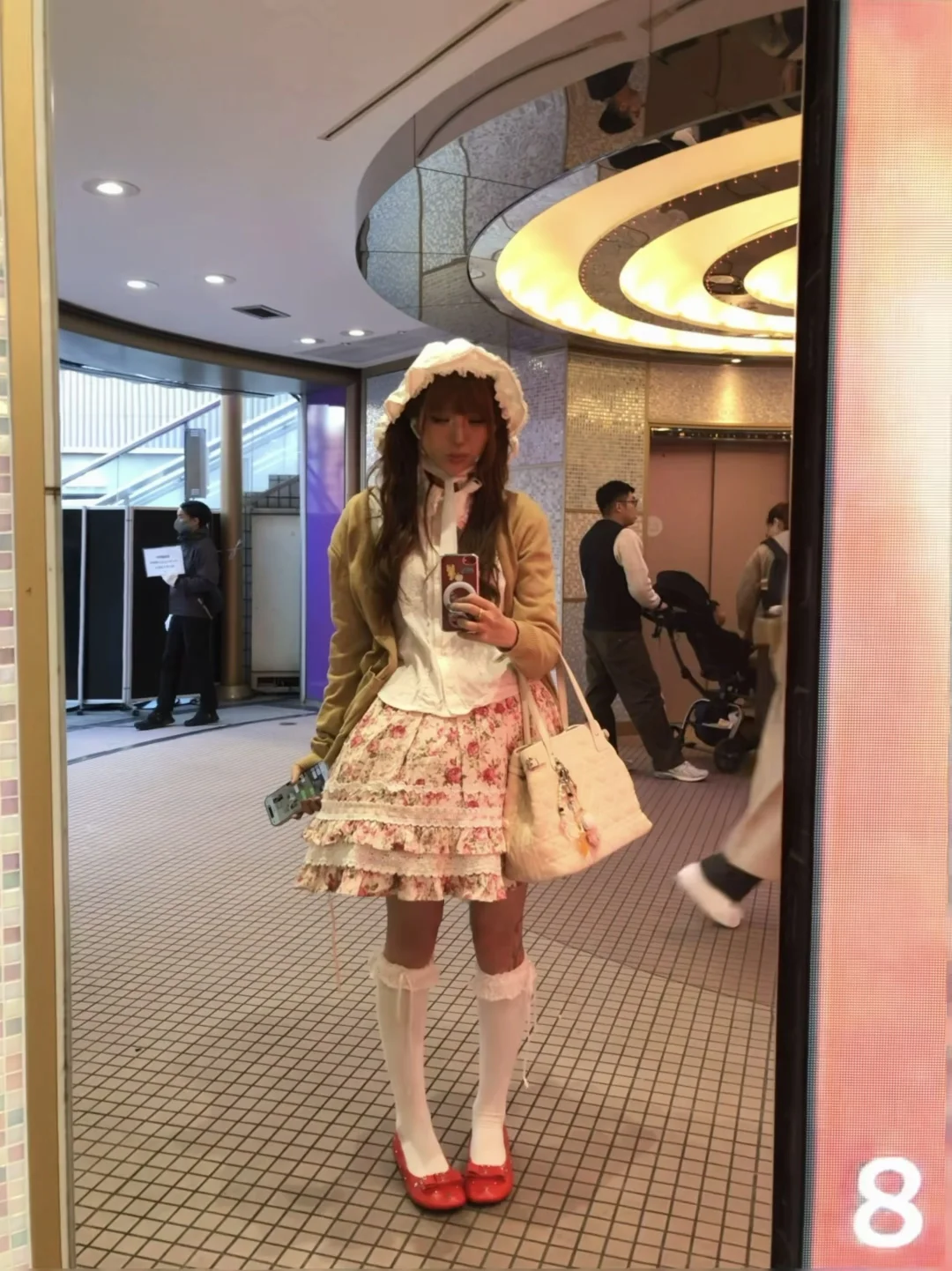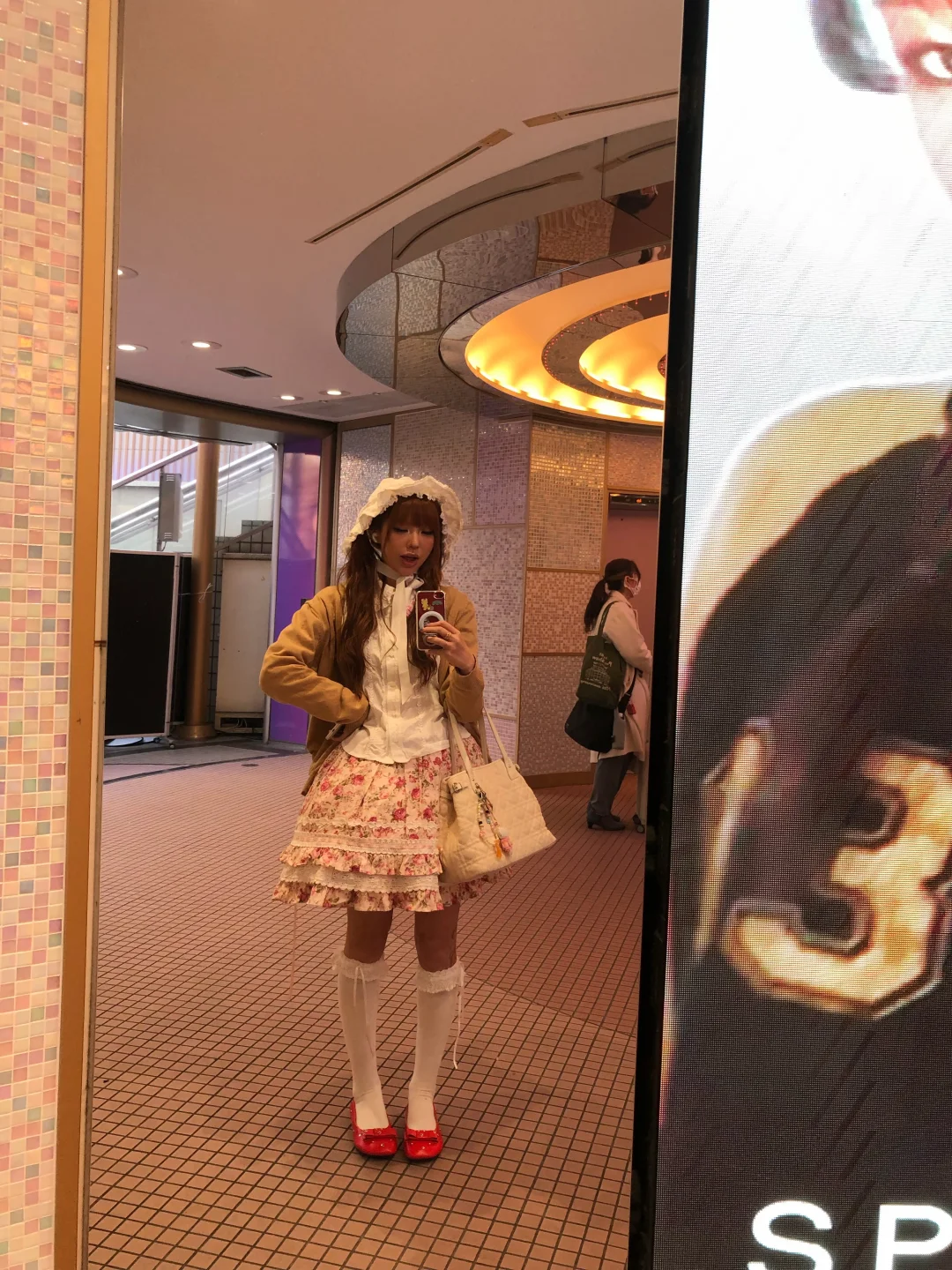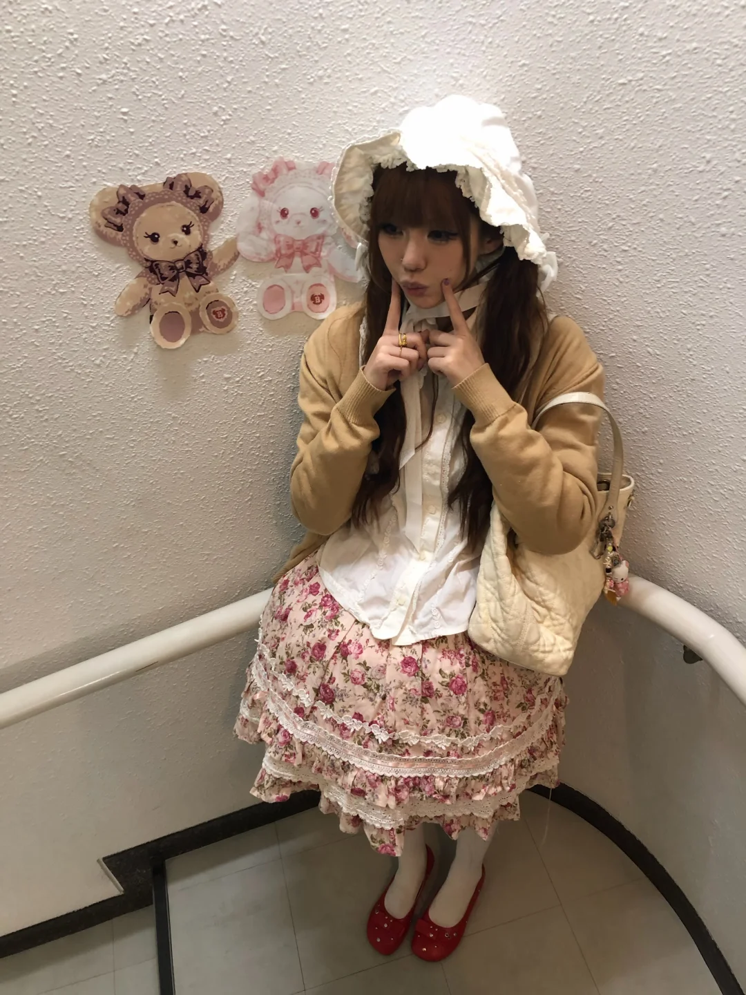 和朋友 穿了老学校lo和哥特lo baby这条老花墙sk时隔三年再穿依旧很萌💖 喜欢sk和衬衫最古早的搭配 喜欢钟型撑 喜欢正腰 圆梦在神宫桥 ~ 🫧