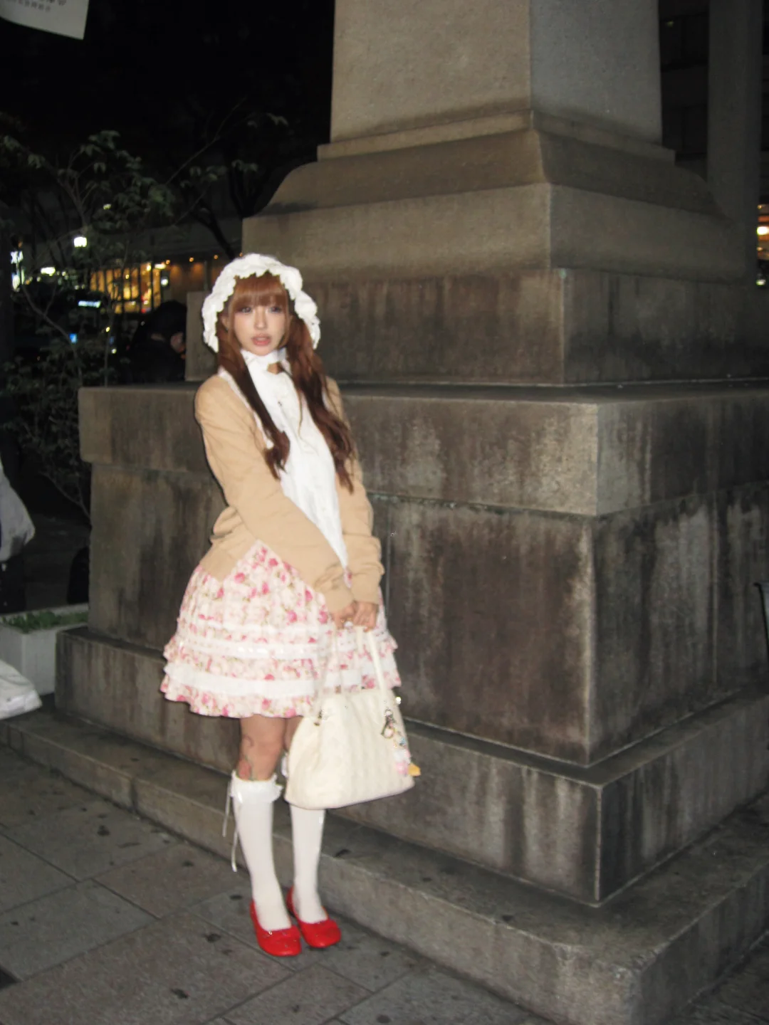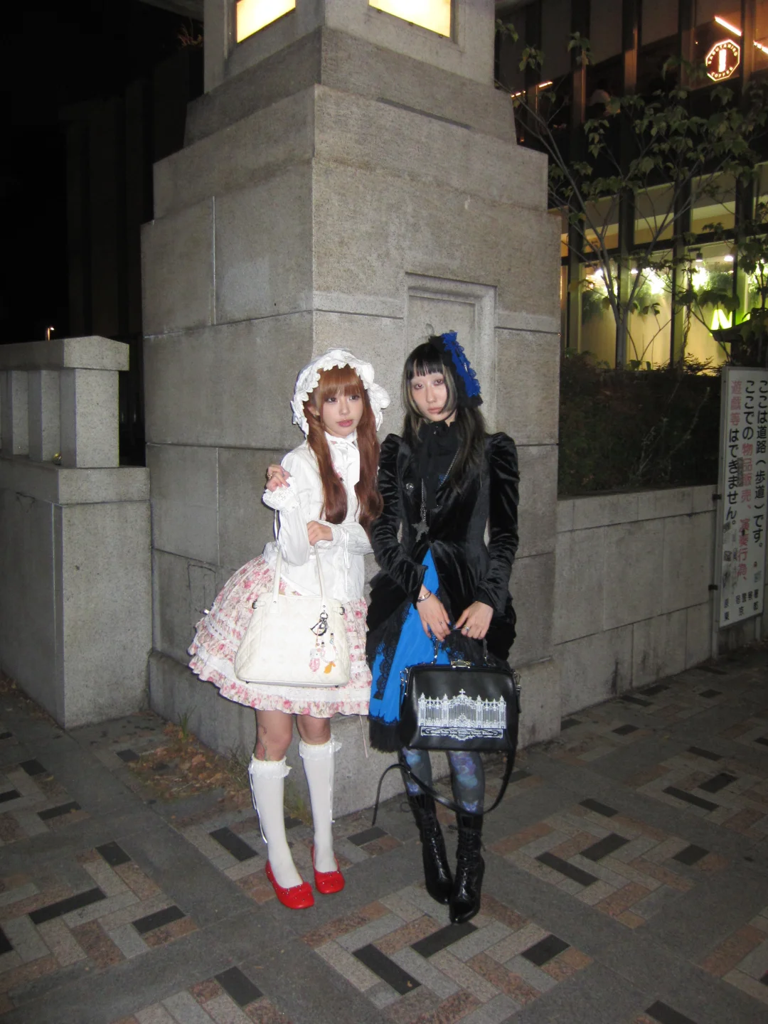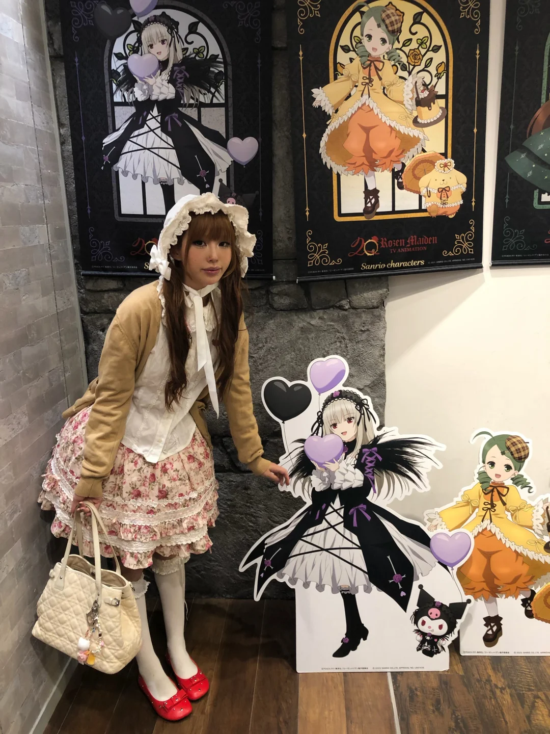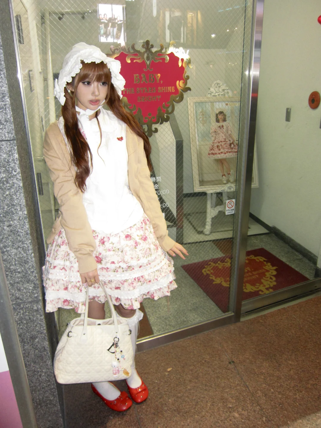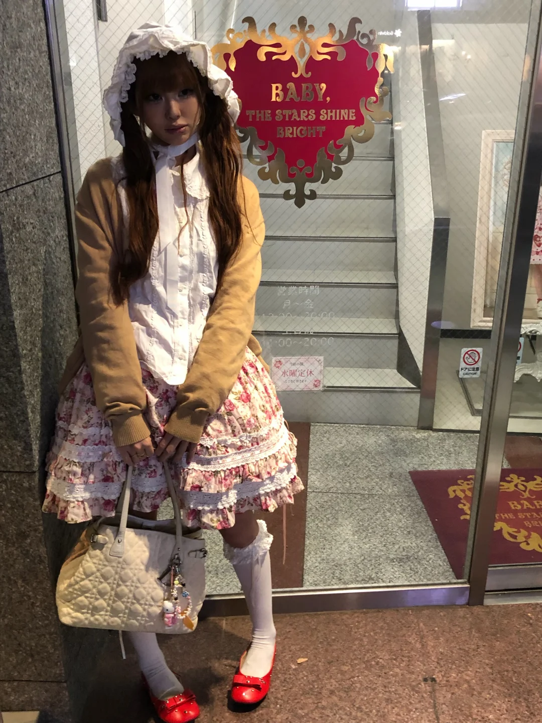 和朋友 穿了老学校lo和哥特lo baby这条老花墙sk时隔三年再穿依旧很萌💖 喜欢sk和衬衫最古早的搭配 喜欢钟型撑 喜欢正腰 圆梦在神宫桥 ~ 🫧