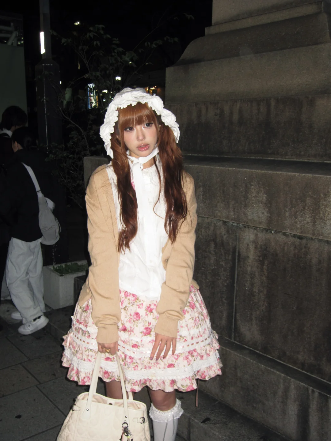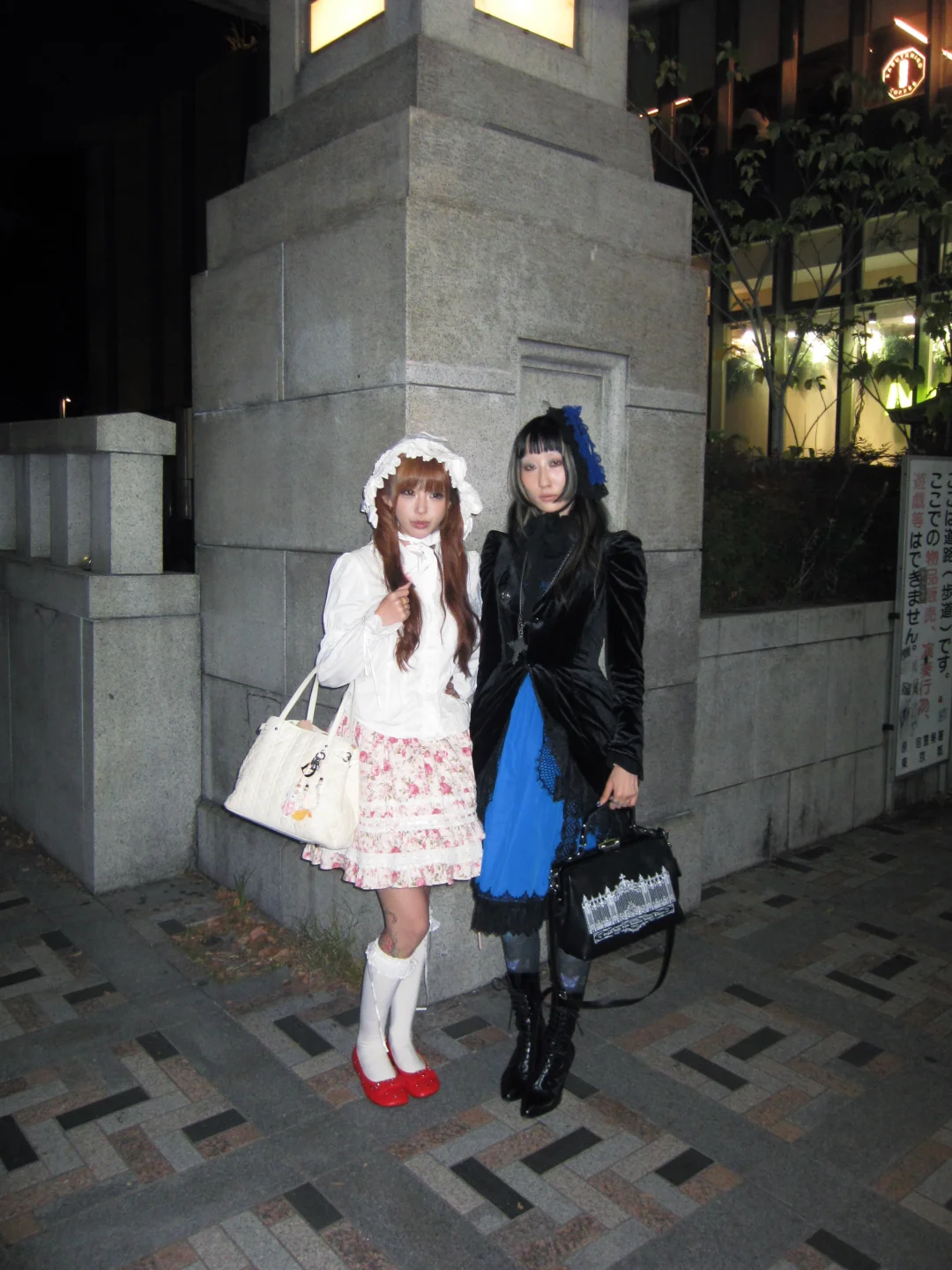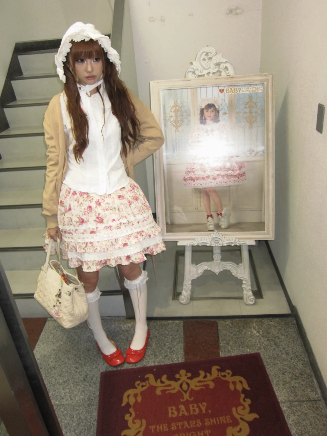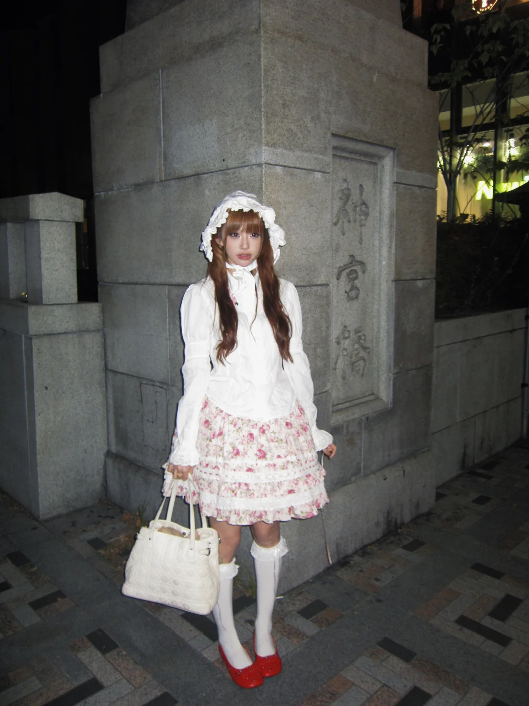 和朋友 穿了老学校lo和哥特lo baby这条老花墙sk时隔三年再穿依旧很萌💖 喜欢sk和衬衫最古早的搭配 喜欢钟型撑 喜欢正腰 圆梦在神宫桥 ~ 🫧