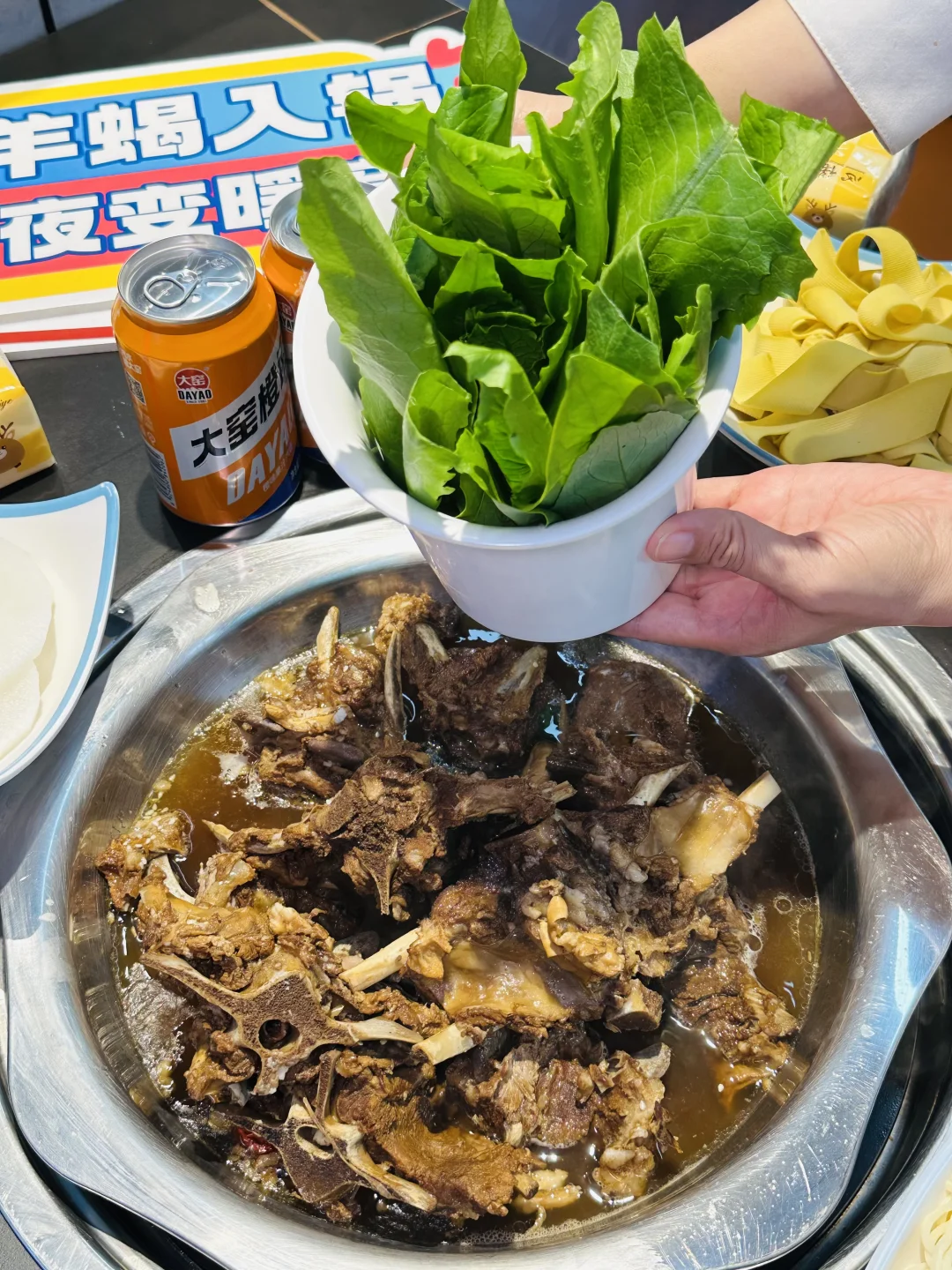 • 油麦菜脆嫩挂味,最后下一份手擀面裹满锅底,直接把这顿的幸福感拉满~