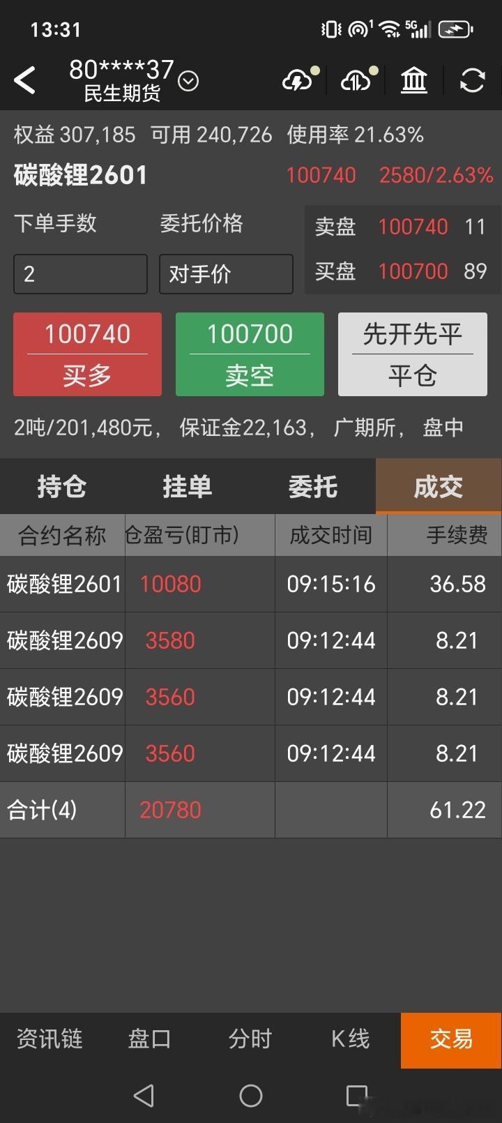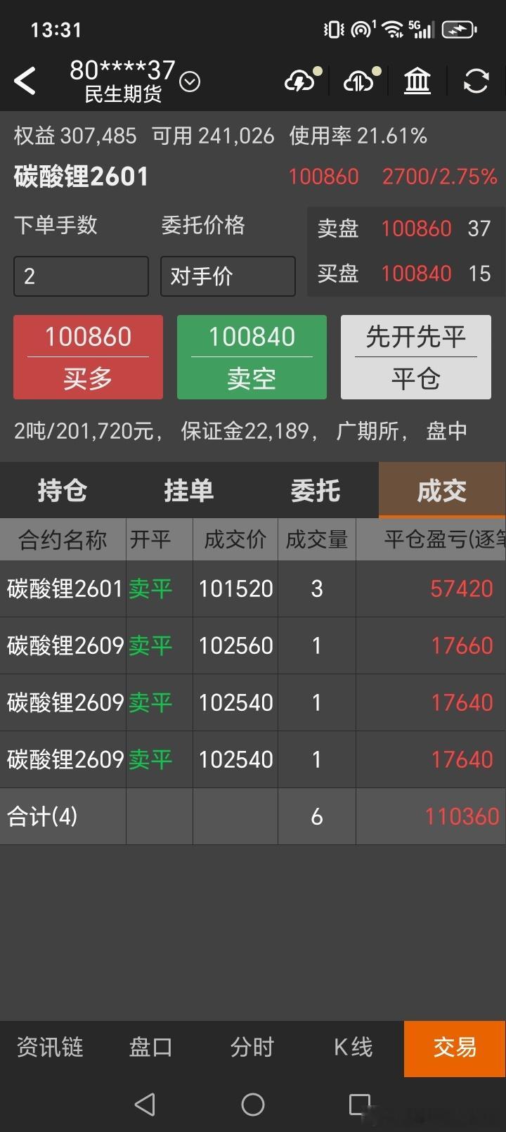 碳酸锂今天继续北上,上午开盘后平仓了6手,目前还剩5手底仓,继续持有。盈利还可以