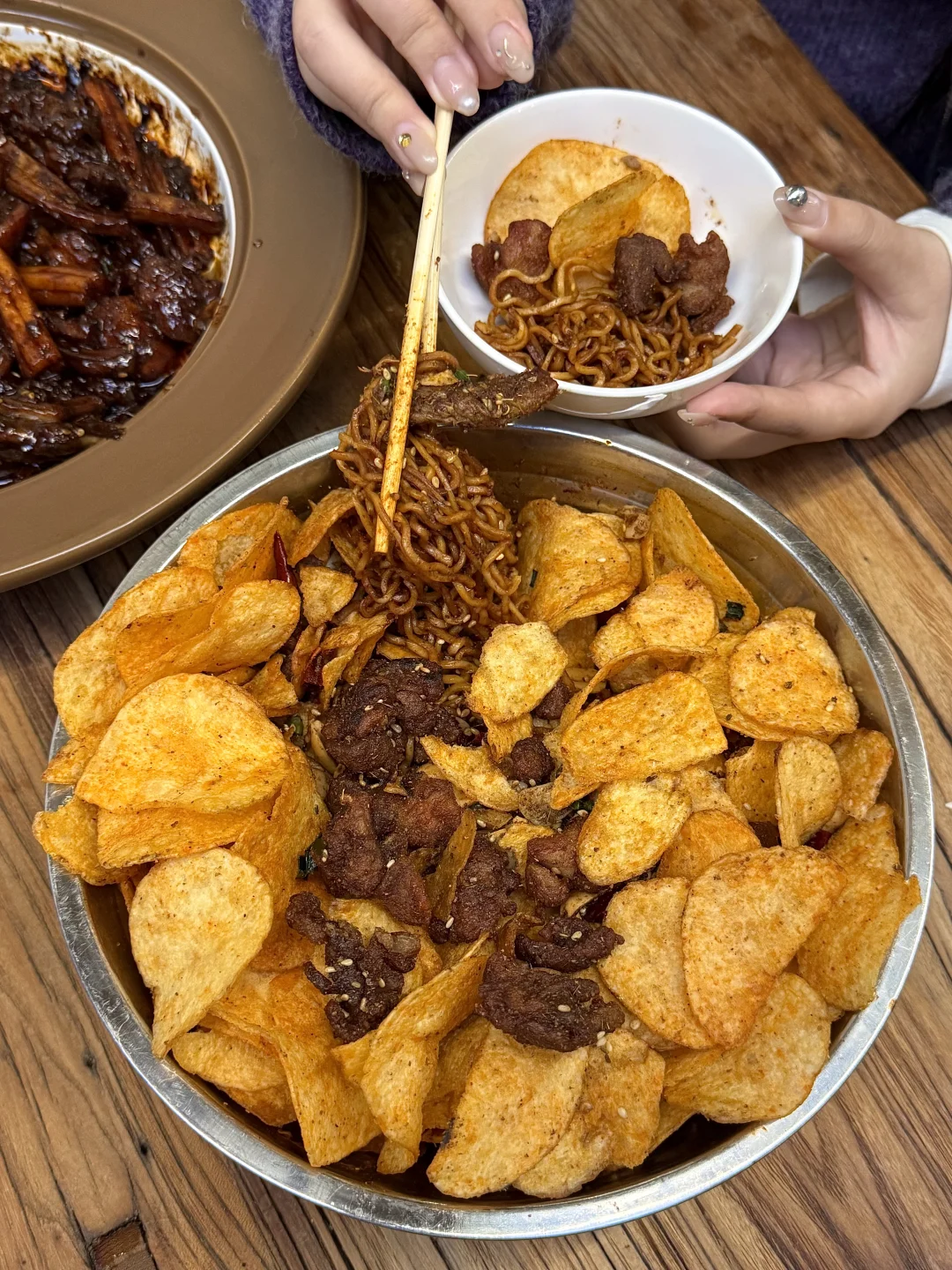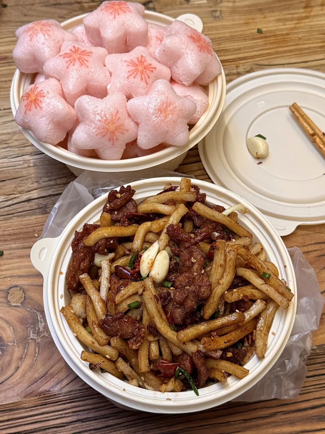 坐穿地铁1号线也要来吃的!!!就在龙翔桥站出来!和朋友5天吃了3次……私心舍不得让他太🔥的店! 辣白菜炒黄牛肉好好吃啊😭略带勾芡鲜辣入味的酱汁裹满牛肉 入口嫩弹又不失嚼劲!我们还点了粉耗子烧牛腩~料很足糯叽叽的 一口下去真的惊为天人的好吃!年糕炒鸡、老坛剁椒鱼头…随便点点都好吃!吃完再来一份酒酿泡芙 简直绝杀! 叫:湘遇长沙口味菜📍