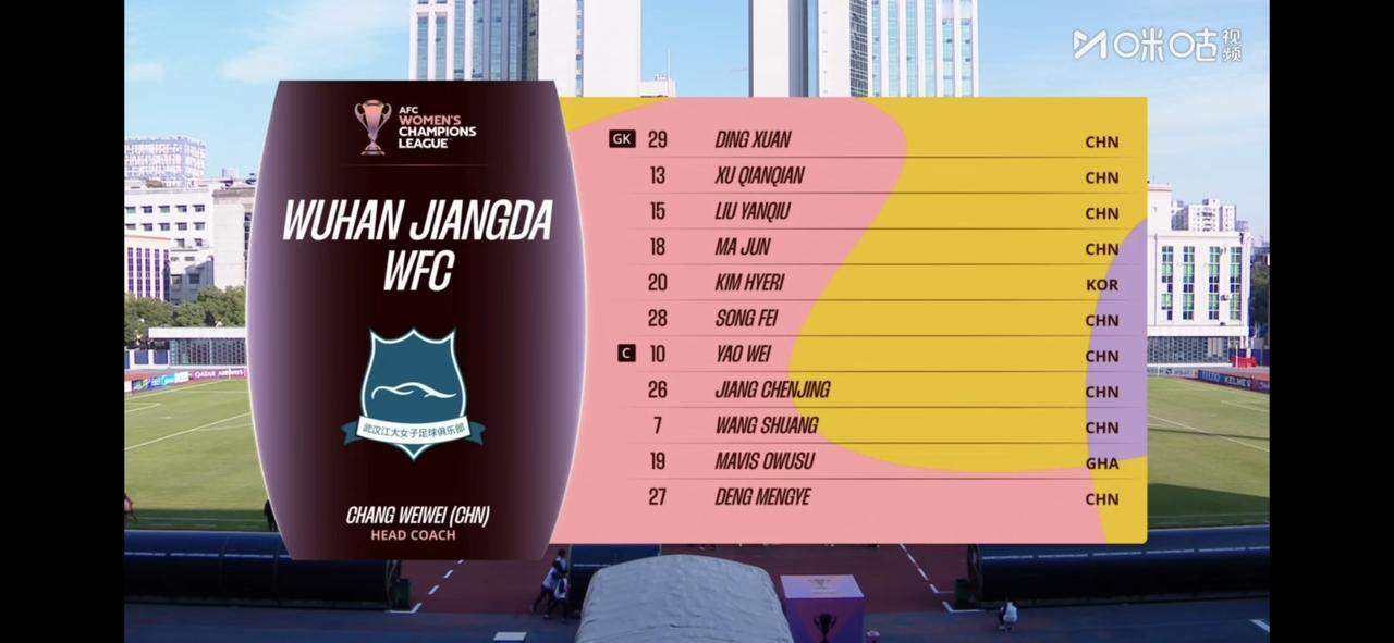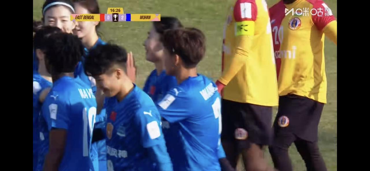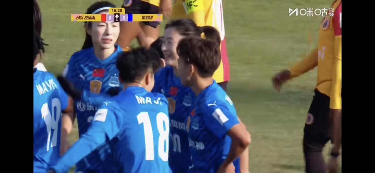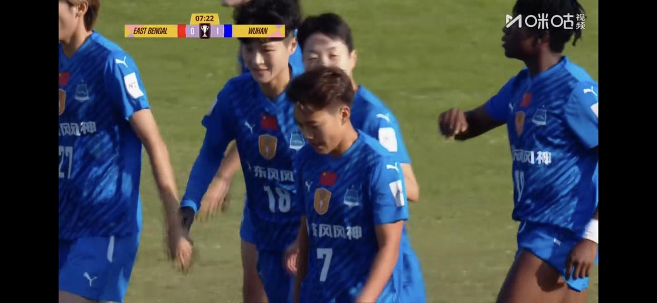 2:0武汉女足领先东孟加拉女足 王霜、姚伟、刘艳秋首发出场。 刚刚踢完上半场,武汉女足这一场踢的很主动,很强势,拼抢很积极且到位,严重阻碍了对方的串联 在第8分钟,王霜接到队友宋菲的传中,直接一脚精准破门 接着在第16分钟,王霜接到队友传球,带球杀向禁区,但对方门将冒然出击,被判罚点球,王霜梅开二度 总之,上半场我们武汉女足机会很多,不管是全场威胁的配合,还是定位球的配合等等,让对方疲于应付,难以对武汉女足形成威胁!