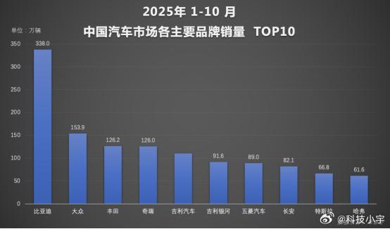 10月,中国车市进入全年冲刺季,比亚迪再次交出亮眼成绩单。10月单月销售44.17万辆,创下年内新高;1–10月累计销量370.19万辆,智驾销量突破新纪录,同比增长13.9%,全年销量目标完成率超80%,。在中国企业(集团)新能源汽车单品牌销量排名中,比亚迪均稳居行业榜首。 与此同时,比亚迪在高端化和海外市场同步提速。10月,方程豹品牌销量31052辆,同比飙升415%,首次突破3万辆大关,成为自主高端品牌的“现象级事件”;全新钛7首个完整销售月突破2万辆,成交均价超过21万元,实现在中高端个性化市场的品牌新突破。 海外市场方面,10月,比亚迪乘用车及皮卡海外销量83524辆,同比暴增155.5%;1–10月累计出口突破78万辆,同比增长超130%。尤其在英国、巴西、法国、西班牙等多国市场份额快速提升,截至目前,比亚迪新能源汽车版图已覆盖全球117个国家和地区,形成多点突破、协同发展的全球布局。