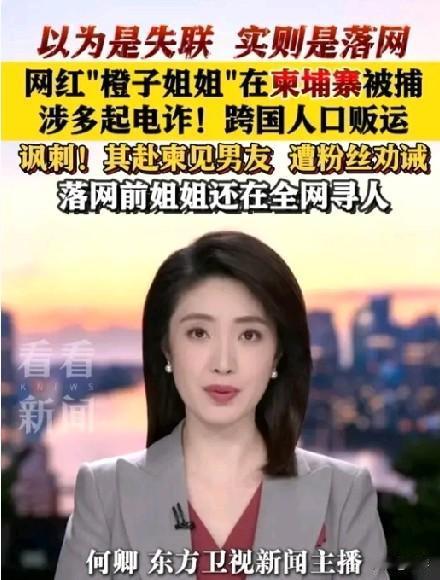 “网红橙子姐姐系柬埔寨诈骗人贩子!” 吃惊了吧?一个拥有几十万粉丝的网红竟然瞬间变成了人贩子,你还在相信网红吗? 当所有人都以为她是失联被骗到柬埔寨去了,还在为她担着心。可这反转确实让人脊背发凉啊…… 就在前几天还是全网心疼的“失联网红”,转头就成了电诈和人口贩运的嫌犯,这滤镜碎得比玻璃还彻底。 她用“甜美人设”当诱饵,在评论区邀粉丝去柬埔寨“玩”,背后却是把人骗去电诈园区的黑手;连家属的“寻人哭诉”,现在看更像一场精心演的戏。 这哪是网红塌房,是把信任当刀,把粉丝当“猎物”啊。 网络这东西,光鲜的人设可能是包装出来的陷阱,甜美的语气说不定藏着镰刀。 不是不能信,是得扒掉滤镜看——那些“海外暴富”“轻松躺赚”的饼,大概率都是裹着糖衣的毒。