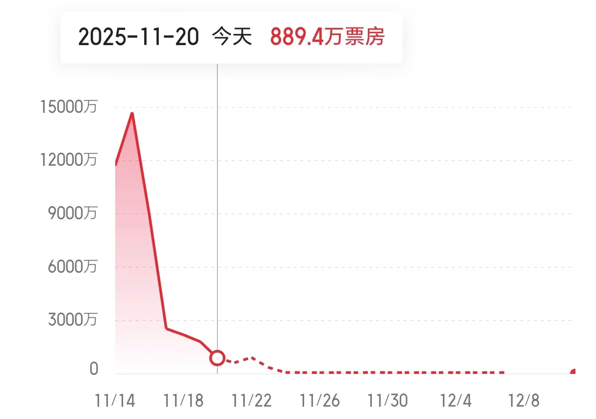 11月20日发稿前,猫眼数据显示,该片当日上座率只有1%,票房仅889万元。自本月14日正式上映以来,该片依托IP积累的粉丝基础,曾创下14.1%的上座率,最高单日票房达到1.4亿元。