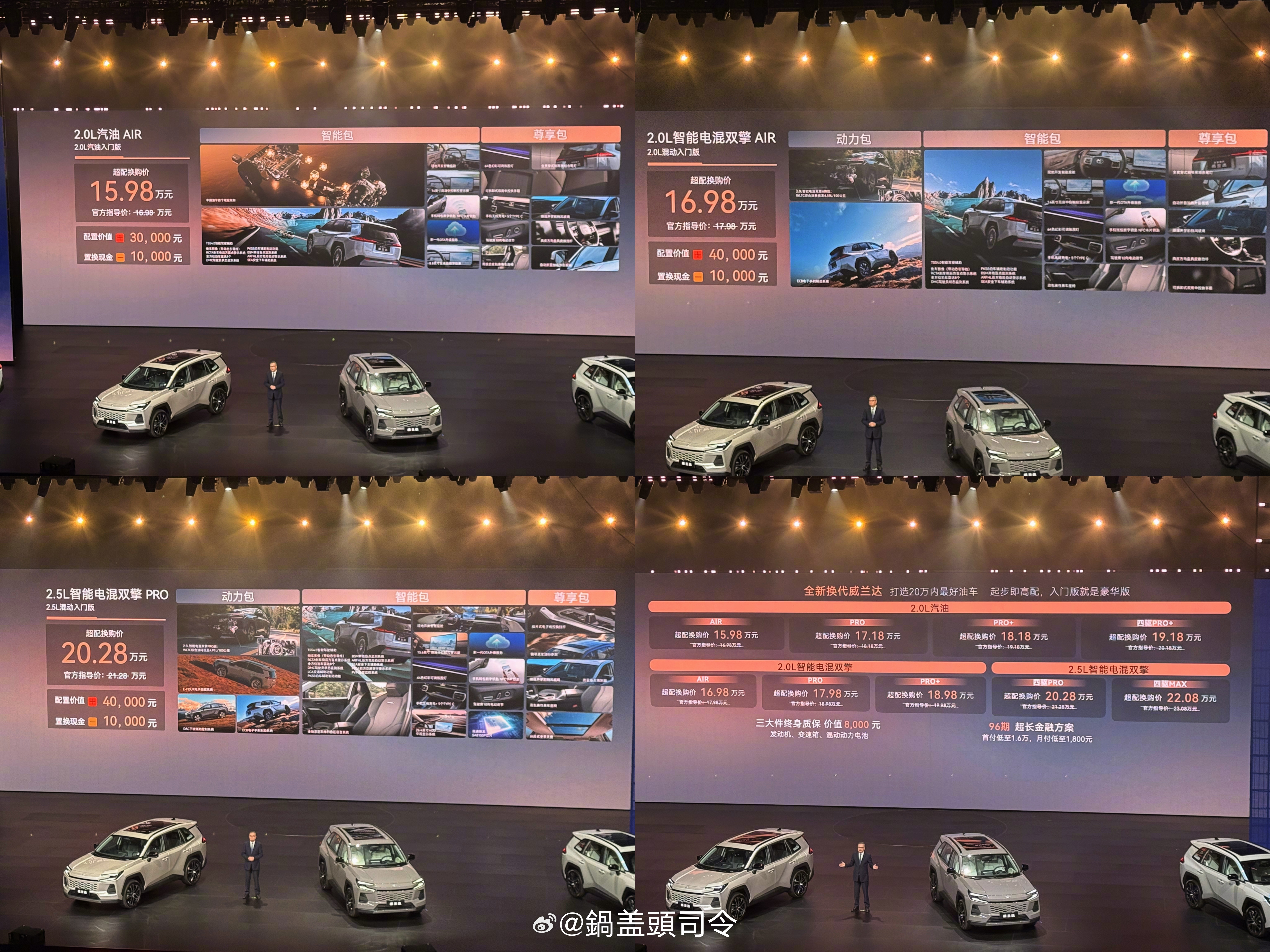 全新换代威兰达正式上市,15.98万起,把油车又往智能化方向推了一把。新威兰达用了丰田最新的设计语言,前脸更精神,车内直接上了15.6英寸大屏,车机也更顺手,手机生态全都能连。智能驾驶升级到TSS 4.0,能看得更远、判断更快,日常通勤更安心。动力方面,第五代智能电混双擎带来更猛的动力、更低的油耗,百公里最低只要4.59L,最长续航能跑到1500km。再加上E-FOUR电子四驱,城市、高速、轻越野都能hold住。一句话:这次的威兰达就是奔着“20万以内最好的油车”去的。