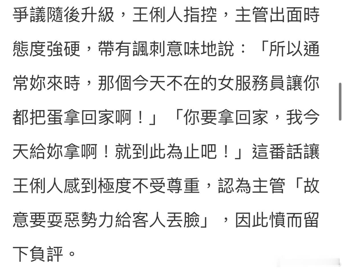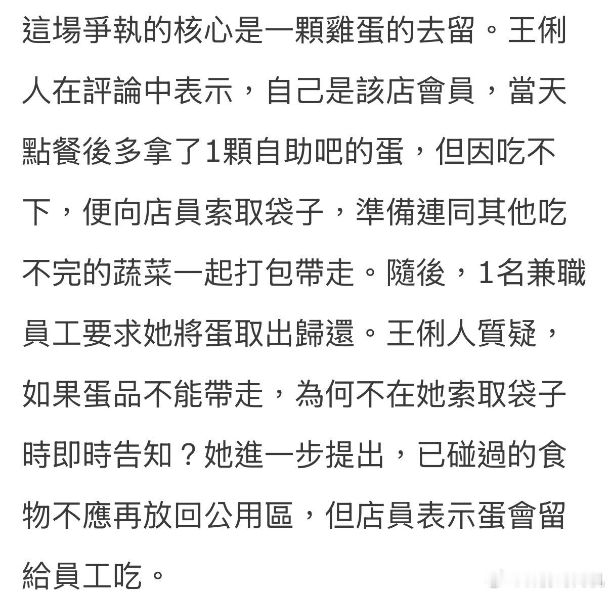王俐人吃自助火锅想把多拿的一颗鸡蛋带走,与店家员工和主管发生争执后,发文晒了给店