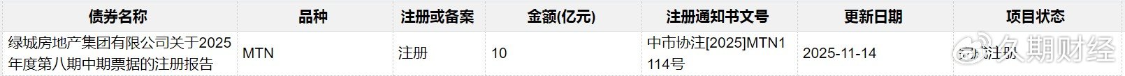 绿城房地产集团的债务融资工具状态已更新为“完成注册”
