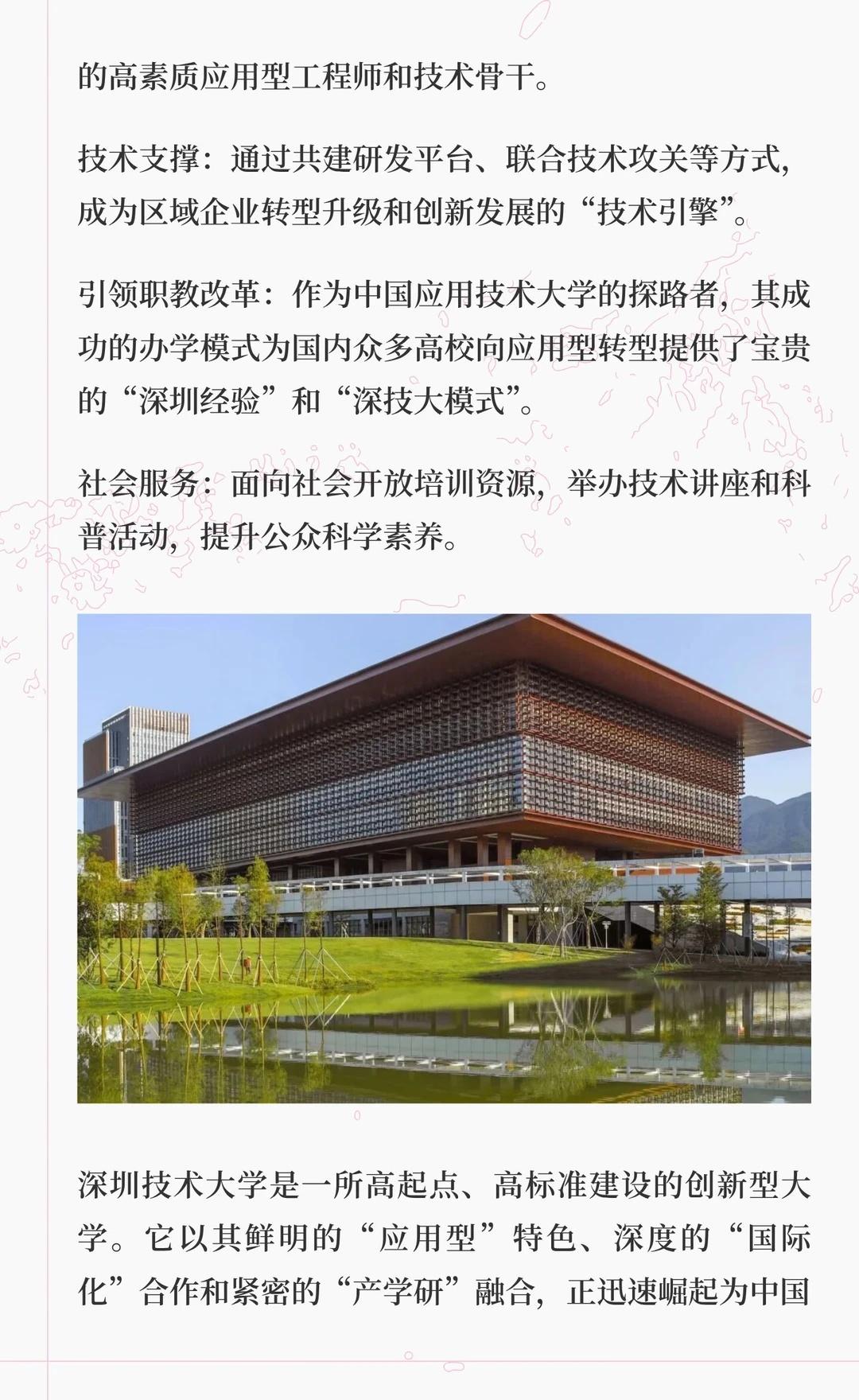 老陈说高校贰佰零壹期之深圳技术大学 深圳技术大学是深圳市政府创办的应用型本科高校,致力于培养高水平工程师和设计师。学校借鉴德国、瑞士等国经验,实行“教授负责制”和项目制教学,与200多家企业合作,推动AI+学科交叉融合,成为粤港澳大湾区创新发展的技术引擎。高校 大学 院校规划 深圳技术大学 院校推荐 深圳高校 深圳