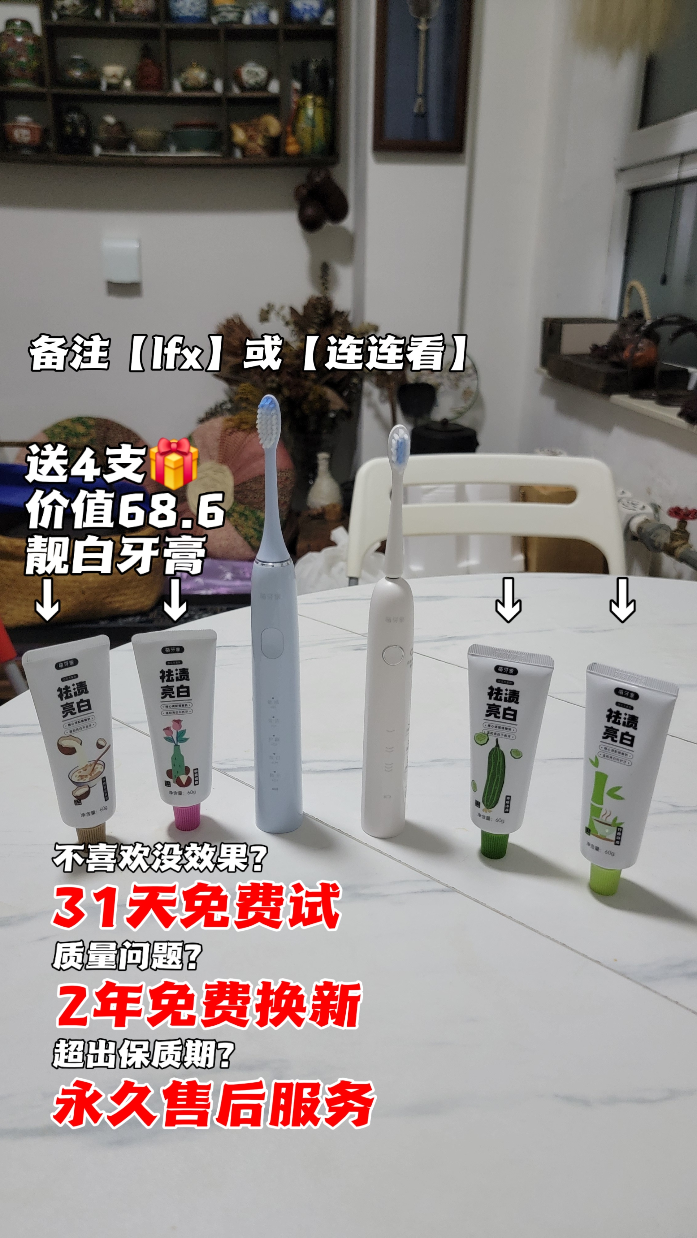 兄弟们,这条我一毛钱没收,全凭良心!评论区有个小抽奖,欢迎参加!!!不光是因为这东西,我和我爱人用着满意,更关键,萌牙家的退让,足够大!!!直接搞一波超超超低!价!的电动牙刷团!我自己用的星光2.0,原价219,团购价139元!配2个原装刷头!我爱人用的星耀款,原价369,团购价259元!配3个原装刷头!这还没完,下|单只要备注“连连看”,送你4支68.6元的靓白牙膏!而且都包用2年以上!2年内坏了,给兄弟们免|费换|新机!兄弟们,这价,你们随便去比,看看哪的,比我这还尤惠的?兄弟们,也可以转给有需要的亲朋好友看看,千万别错过这次尤惠!不过,兄弟们也别冲动!得理性消|费呀!如果自己或家人,没蛀过牙,没花钱看过牙,不抽🚬、牙也不黄的,那就别买!没必要!手动该怎么刷,就怎么刷!这电动牙刷,就适合那些蛀过牙、补过牙,牙还有点黄的朋友!用它,早晚2分钟,把牙刷的干干净净!像我一样,靓白又健康!所以,兄弟们好好想一想,如果有需要!就趁便|宜,赶紧、赶紧给自己和家人都搞一支!真的很实!惠!另外,兄弟们请放100个心!我绝!对!会对大家负责任!不好用,没用的东西,我不会推|荐给大家!只有用过,好用,我才会给大家推|荐!萌牙家的电动牙刷,我和我爱人,从25年4月开始,天天都在用,的的确确是个好东西!当然,我说千遍好,还不如兄弟们自己试试!反正他们家提供31天免|费试|用服|务!31天内,不好用,没效|果,随便退!退不了,找我就是!好用,有效|果,兄弟们就留下用!有这售|后,我推|荐的安心,大家也可以用的放心,用的安心!想买的兄弟们,赶紧、赶紧去下面领张圈!只有7天!只有7天!赠|品数量也有限。请大家抓紧一些!