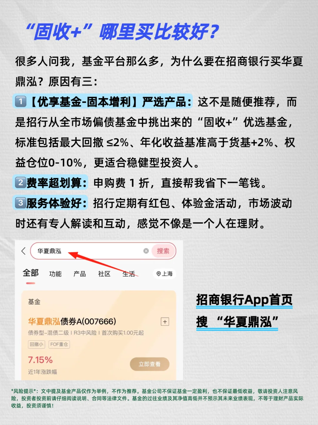 很多人问我,基金平台那么多,为什么要在招行买华夏鼎泓?原因有三: