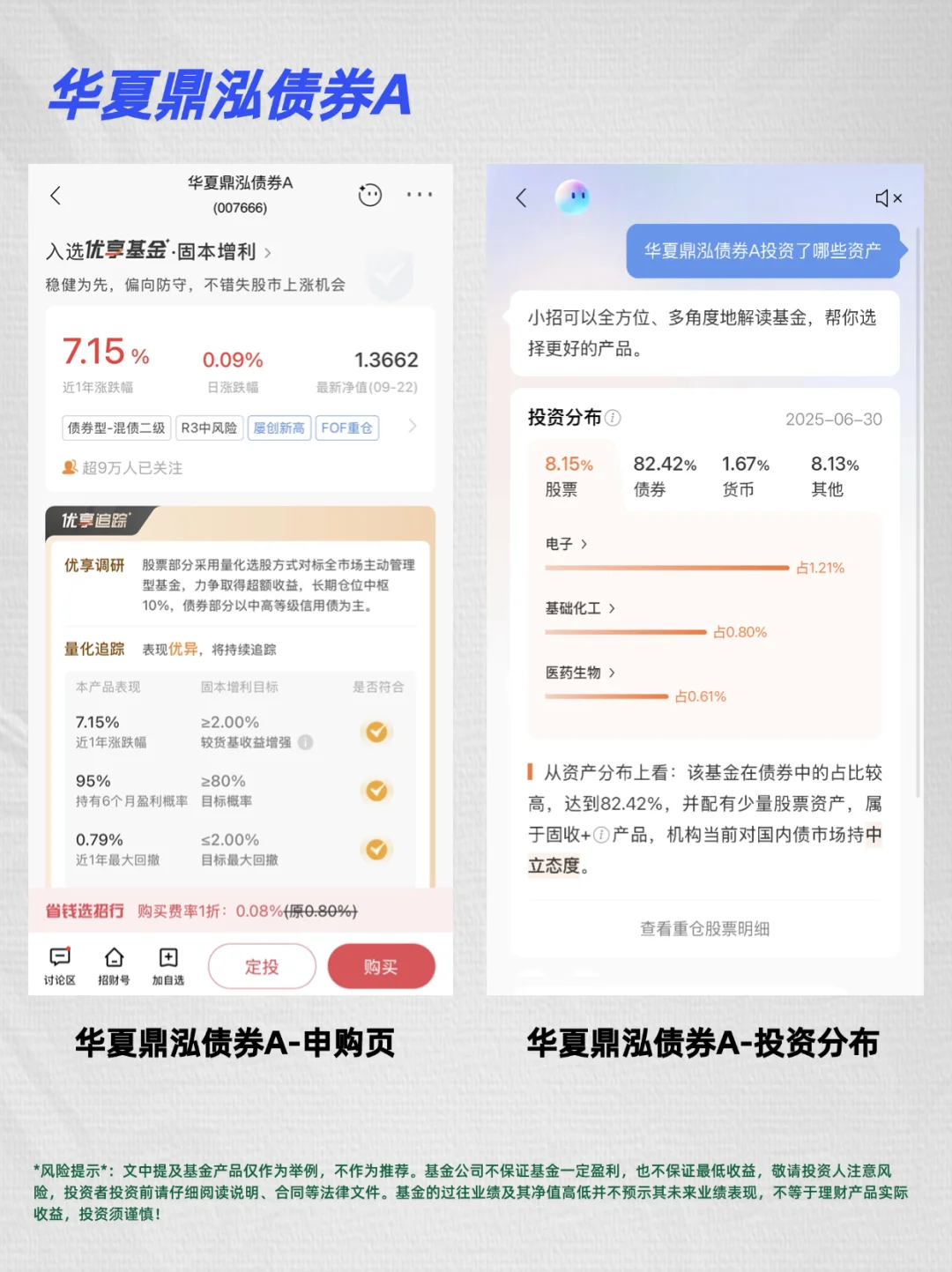 打开招商银行App→在首页搜索框输入 “华夏鼎泓” →选择【华夏鼎泓债券:A类(007666)/C类(007667)】→按提示申购即可。