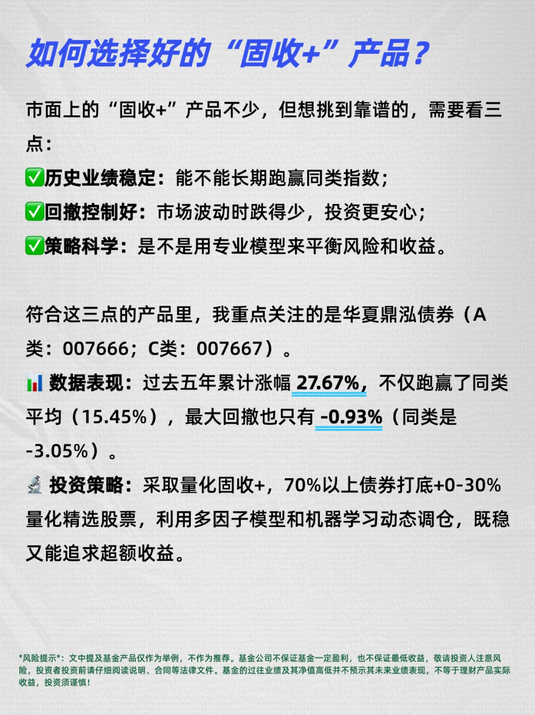 其实答案很简单:风险偏好降低时,“固收+”产品往往是不错的选择。固收+在稳健的基础上,让收益多一点弹性。