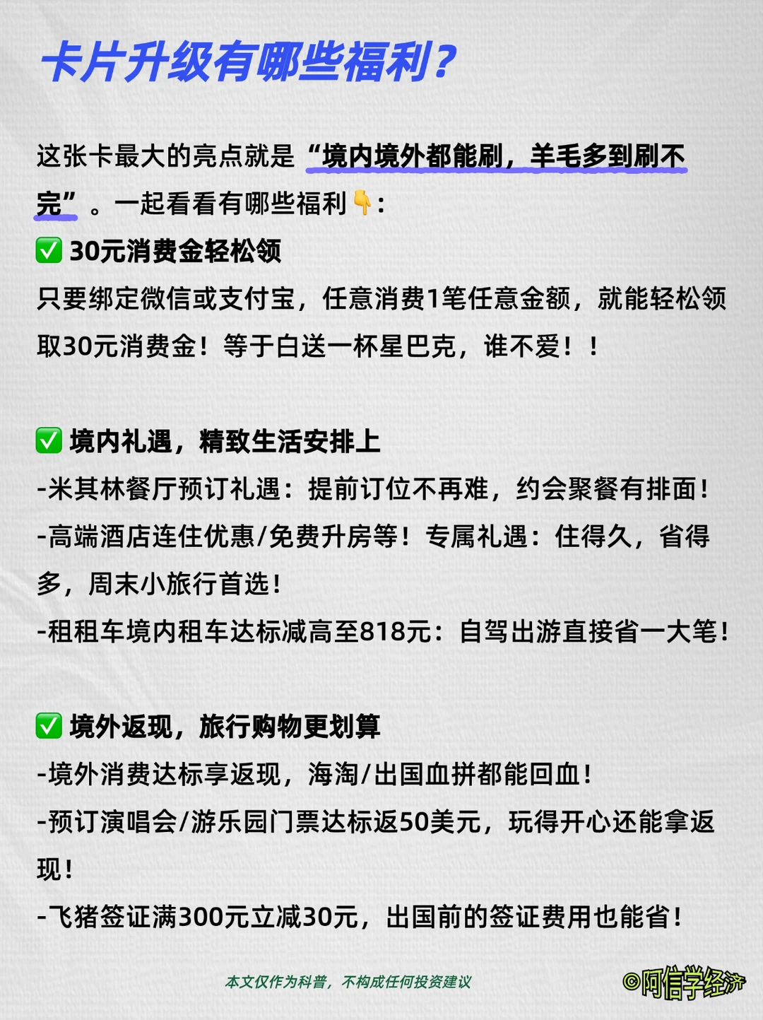 这张卡最大的亮点就是“境内境外都能刷,羊毛多到刷不完”。一起看看有哪些福利👇: