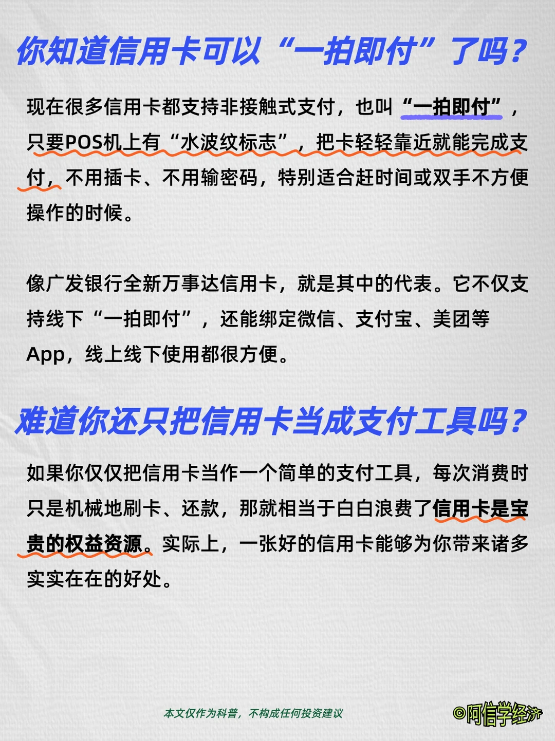 像广发银行全新万事达信用卡,就是其中的代表。它不仅支持线下“一拍即付”,还能绑定微信、支付宝、美团等App,线上线下使用都很方便。