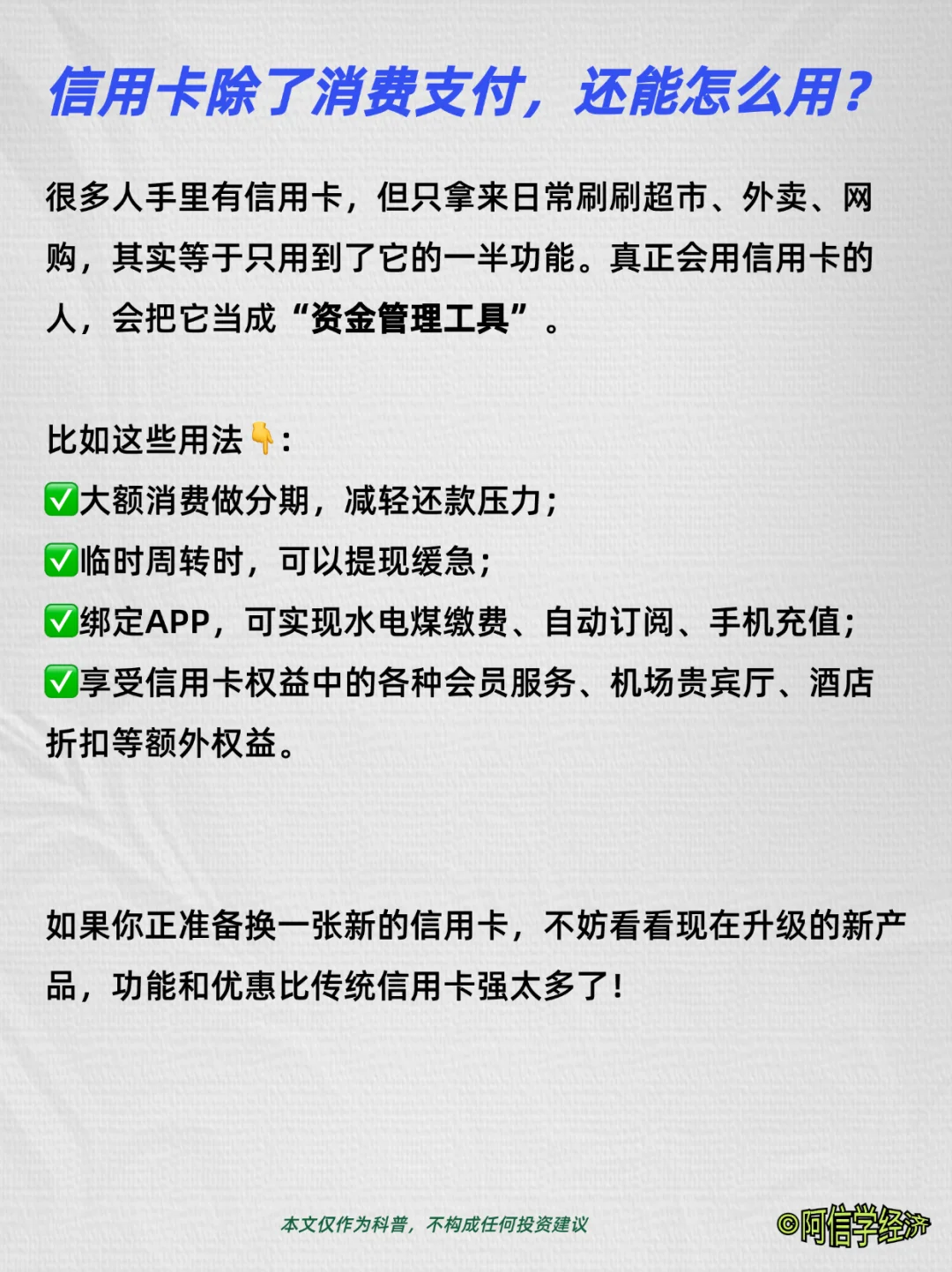 很多人手里有信用卡,但只拿来日常刷刷超市、外卖、网购,其实等于只用到了它的一半功能。真正会用信用卡的人,会把它当成“资金管理工具”。