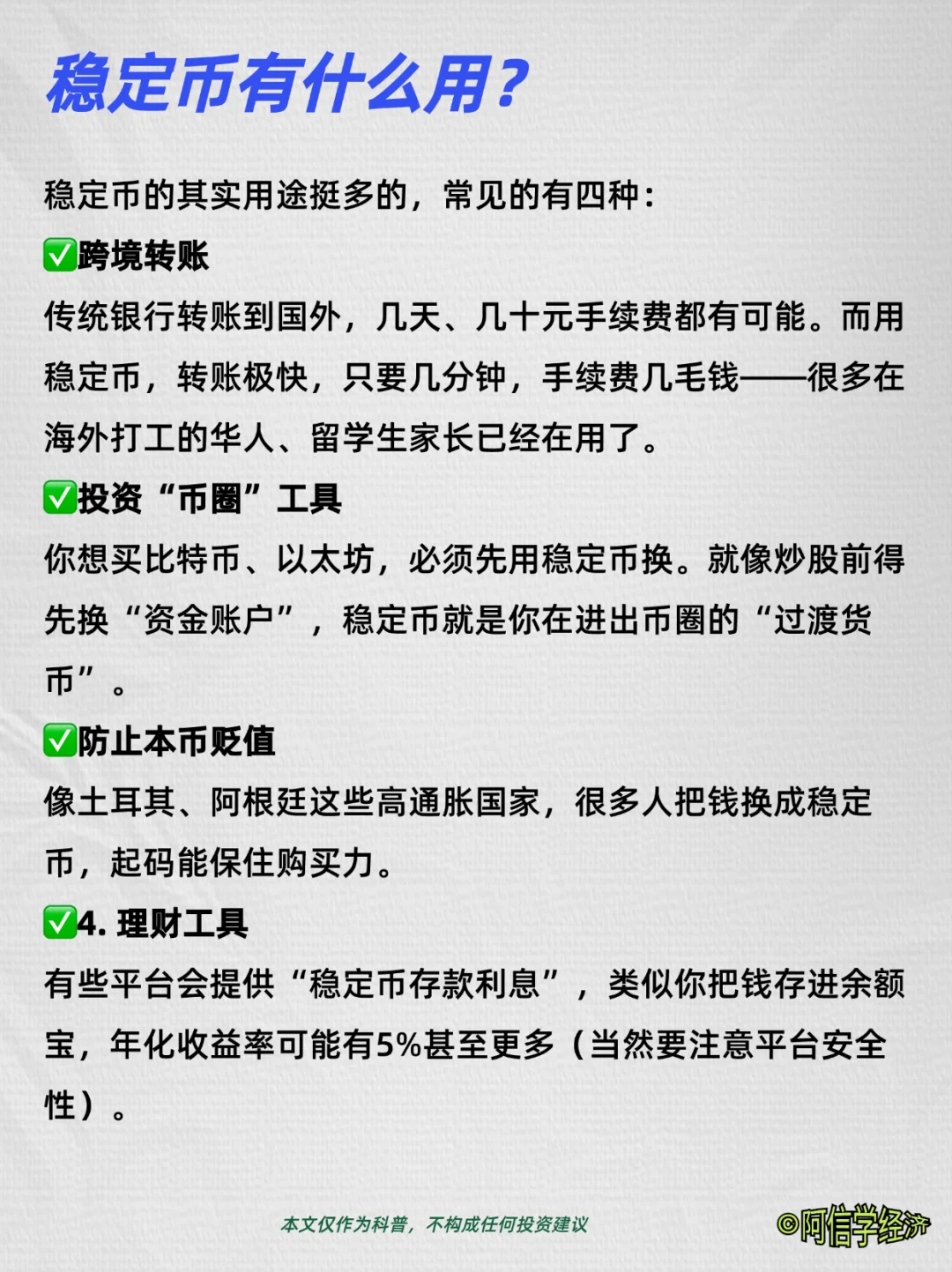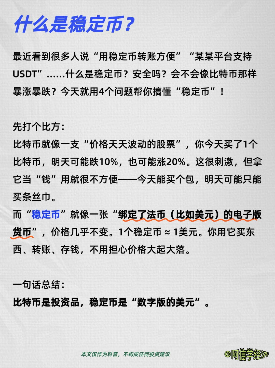 本文从四个方面介绍稳定币: [一R]什么是稳定币? [二R]稳定币真的稳定吗? [三R]稳定币有什么用? [四R]稳定币有什么风险?