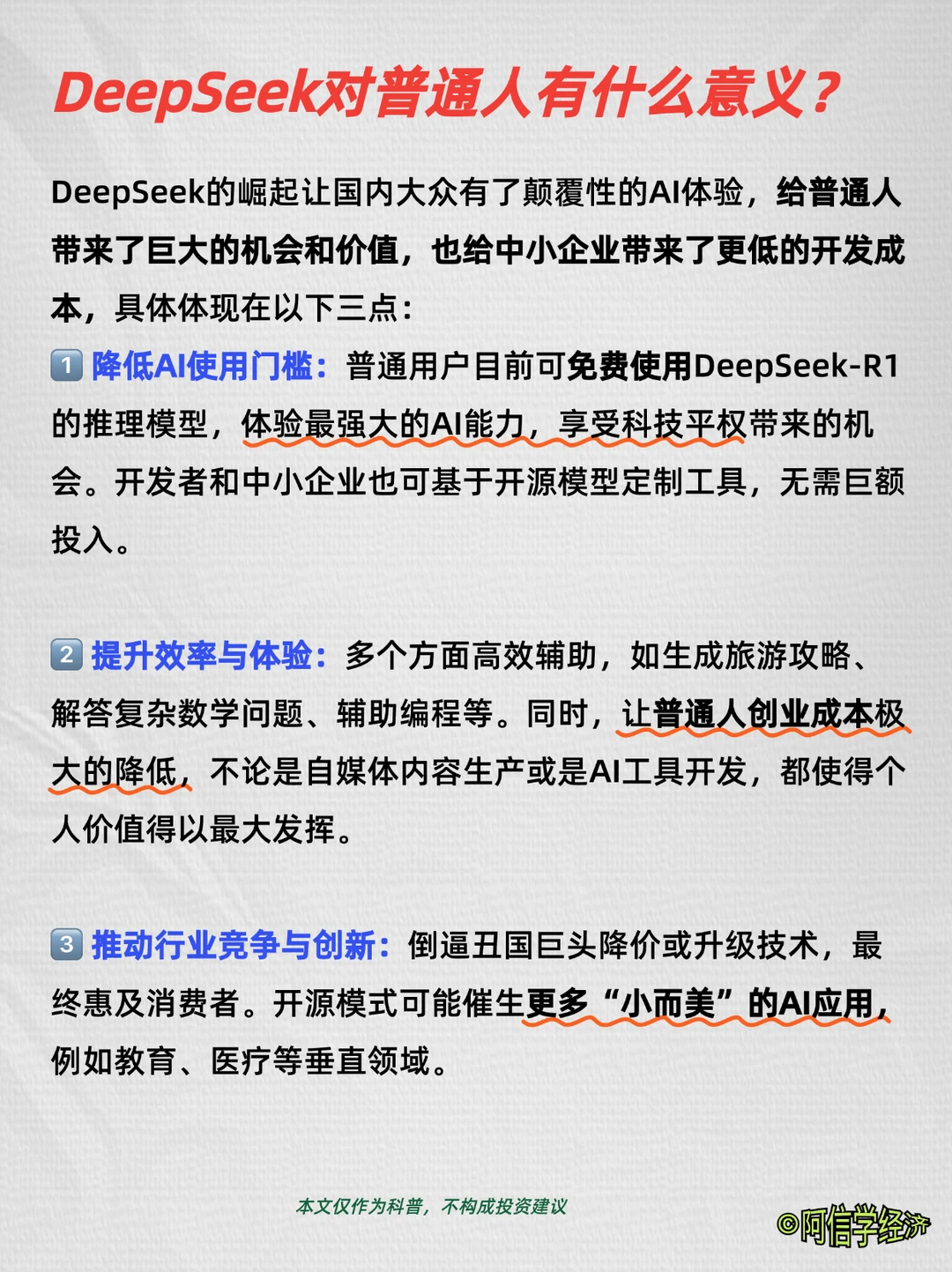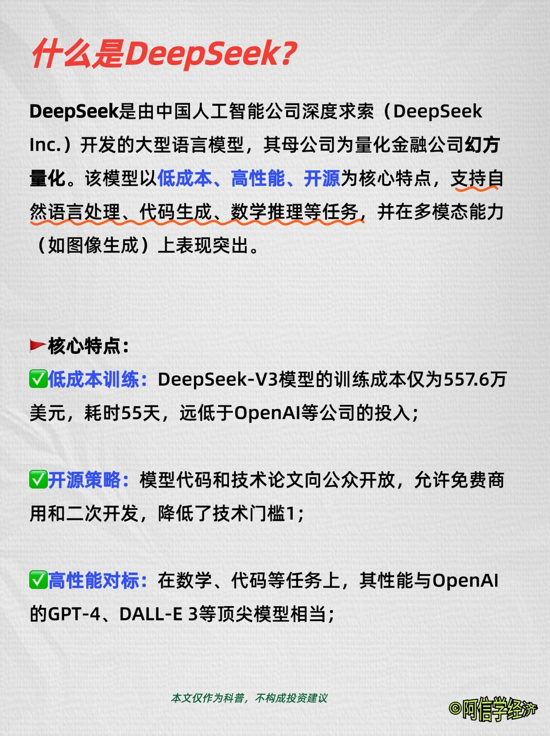[彩虹R]一问看懂DeepSeek的强大! 本文主要从以下四个方面进行整理: [一R] 什么是DeepSeek? [二R] 为什么会震惊全球? [三R] DeepSeek对普通人有什么意义? [四R] DeepSeek对我国的重大意义? 详细内容查看☝️图片。